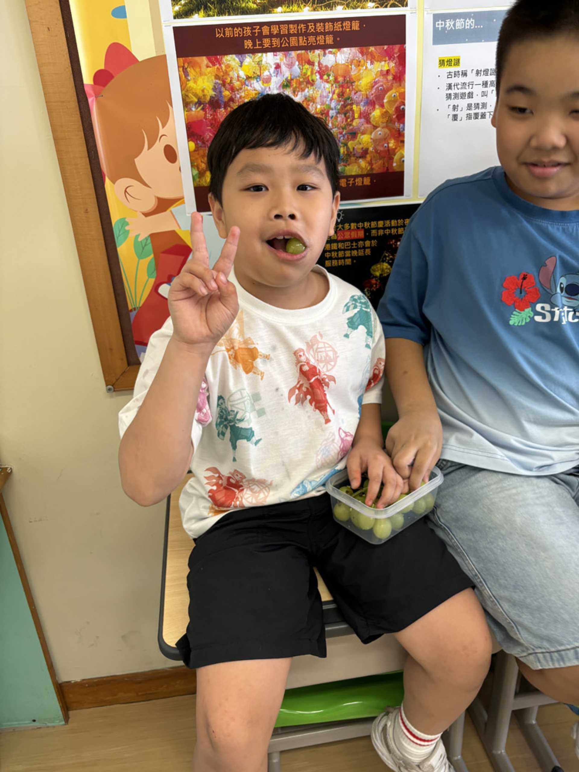 The Chinese Language & Literature department specially designed an interactive game, "Guess the Idiom with Emojis," allowing students to learn idioms related to the Mid-Autumn Festival, harvest, and reunion through fun image association, such as "a perfect union of flowers and a full moon" and "abundant harvest," combining learning with entertainment. Coinciding with the Farmers' Harvest Festival, teachers and students shared seasonal fruits, experiencing the joy of harvest and learning the importance of a balanced diet, combining Chinese culture with healthy living concepts. This activity spanned multiple learning areas, including Chinese language and literature, visual arts, Chinese culture, healthy lifestyles, and national events calendar. It not only enhanced class cohesion but also helped students learn about important national holidays, cultivate an attitude of gratitude and cherishing resources, and pay attention to physical and mental health, thus embodying the spirit of national education.