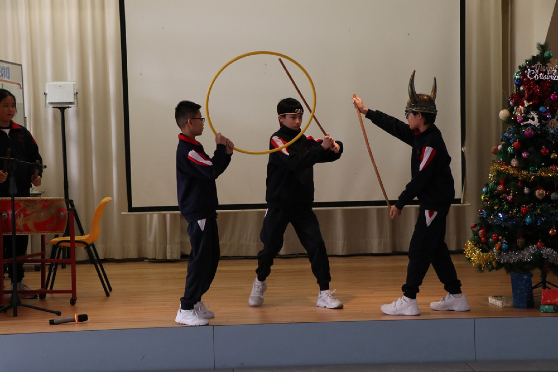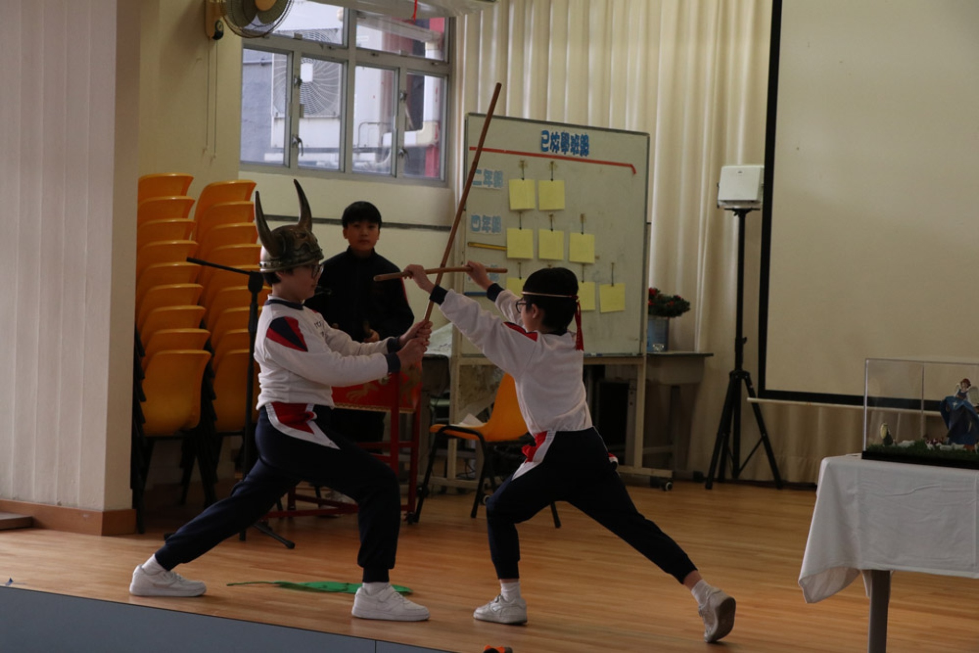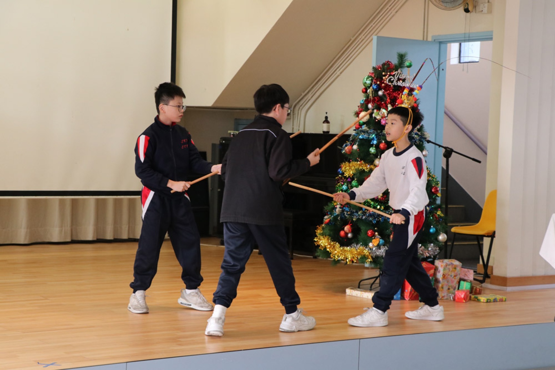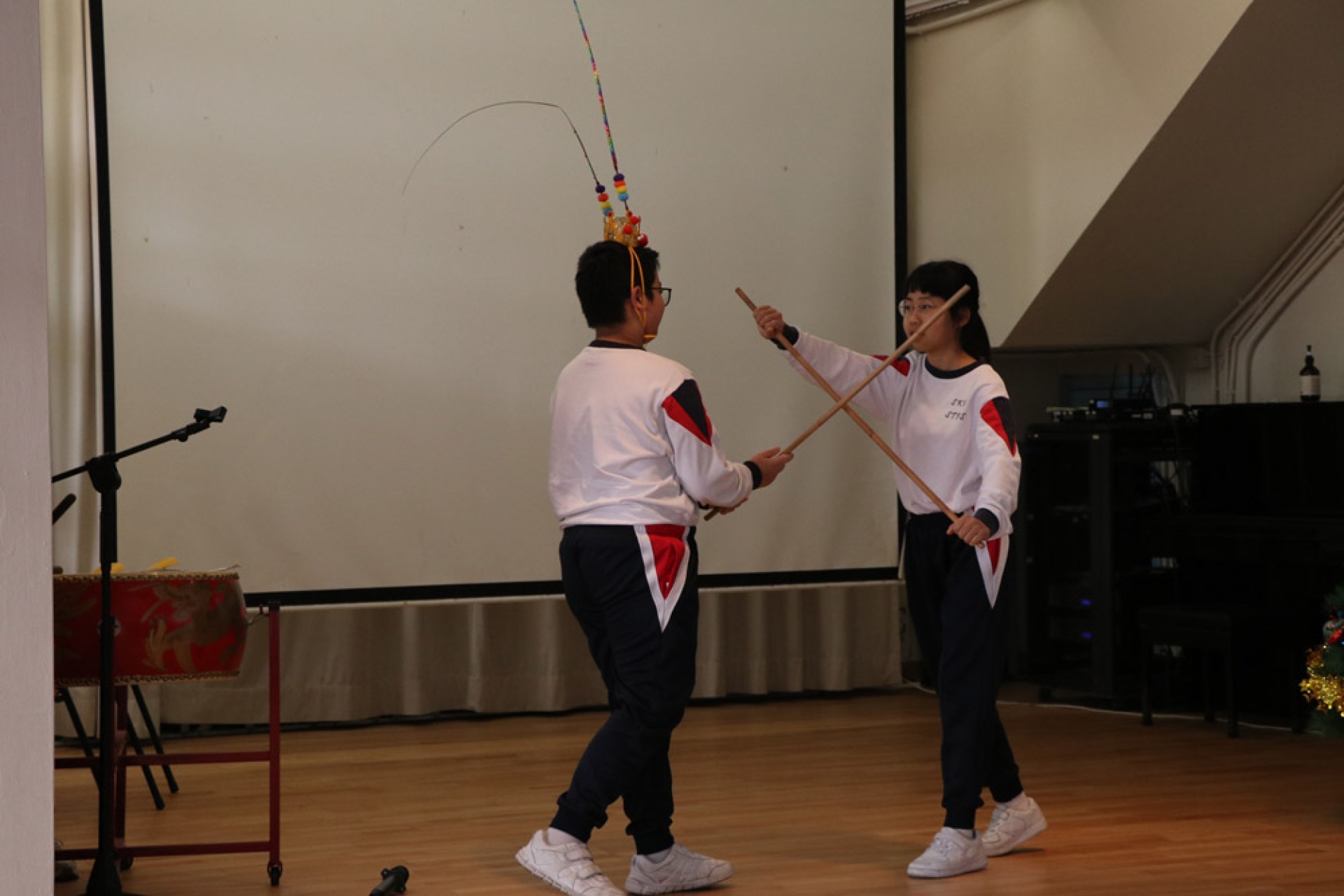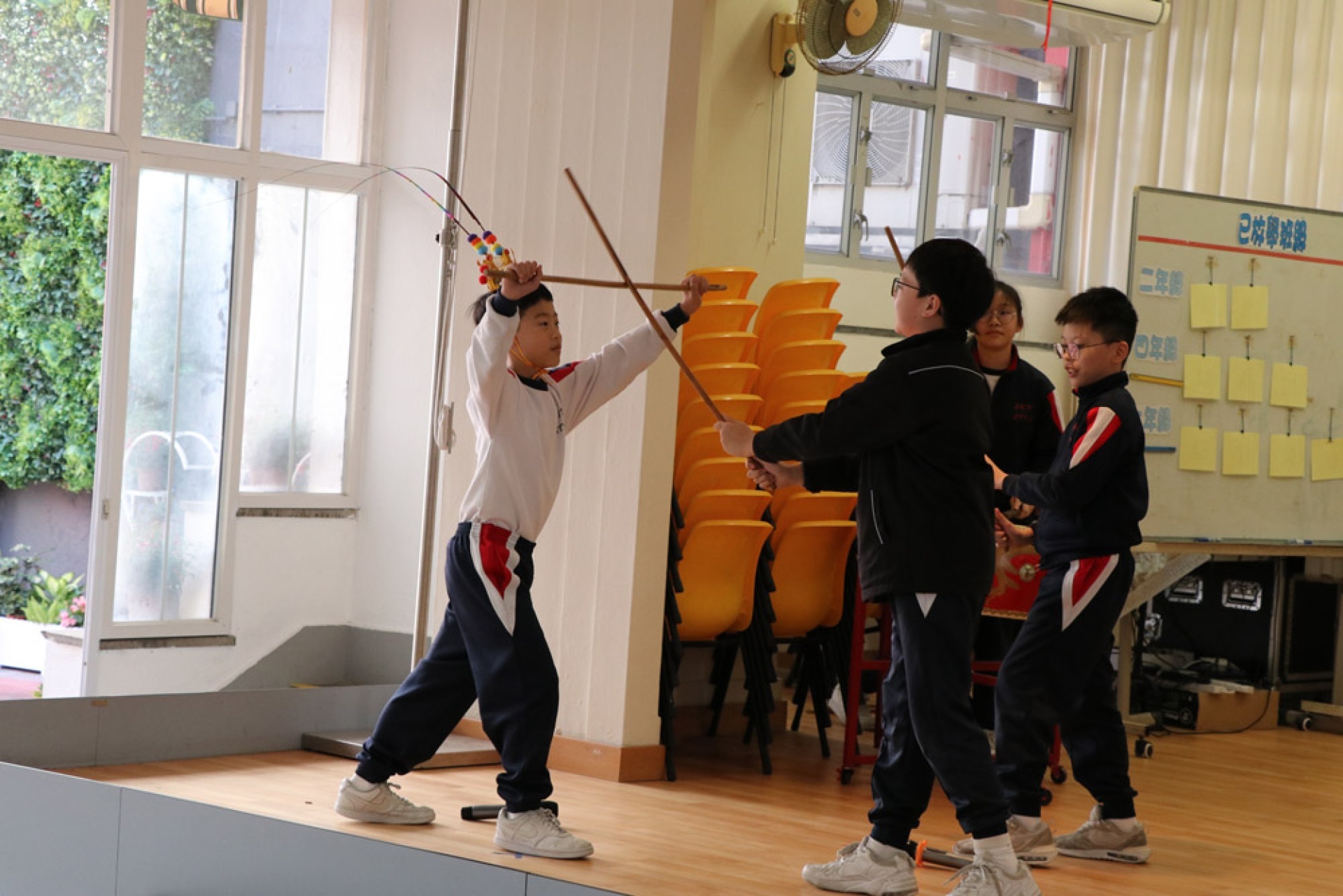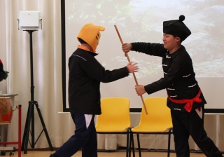 Our school collaborated with the Chinese University of Hong Kong's QSIP (Quality Schools Improvement Programme) to organize an interdisciplinary learning activity themed around Chinese opera, integrating intangible cultural heritage education. Students wrote scripts based on classic Chinese texts such as *Journey to the West*; and learned the singing, recitation, acting, and martial arts techniques of opera in music, visual arts, and physical education, respectively, ultimately rehearsing a complete Chinese opera performance. This activity, through interdisciplinary collaboration, allowed students to understand and experience traditional Chinese performing arts from multiple perspectives, enhancing their identification with and appreciation of Chinese culture.