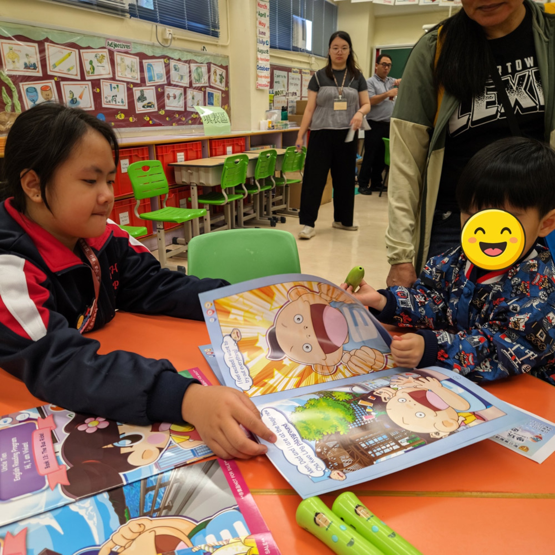 At the Reading is FUN zone, student ambassadors used reading pens to explore English storybooks together with the children. Through audio support and interactive guidance, participants were fully engaged in the stories. The joyful atmosphere transformed reading into a lively and shared learning experience.