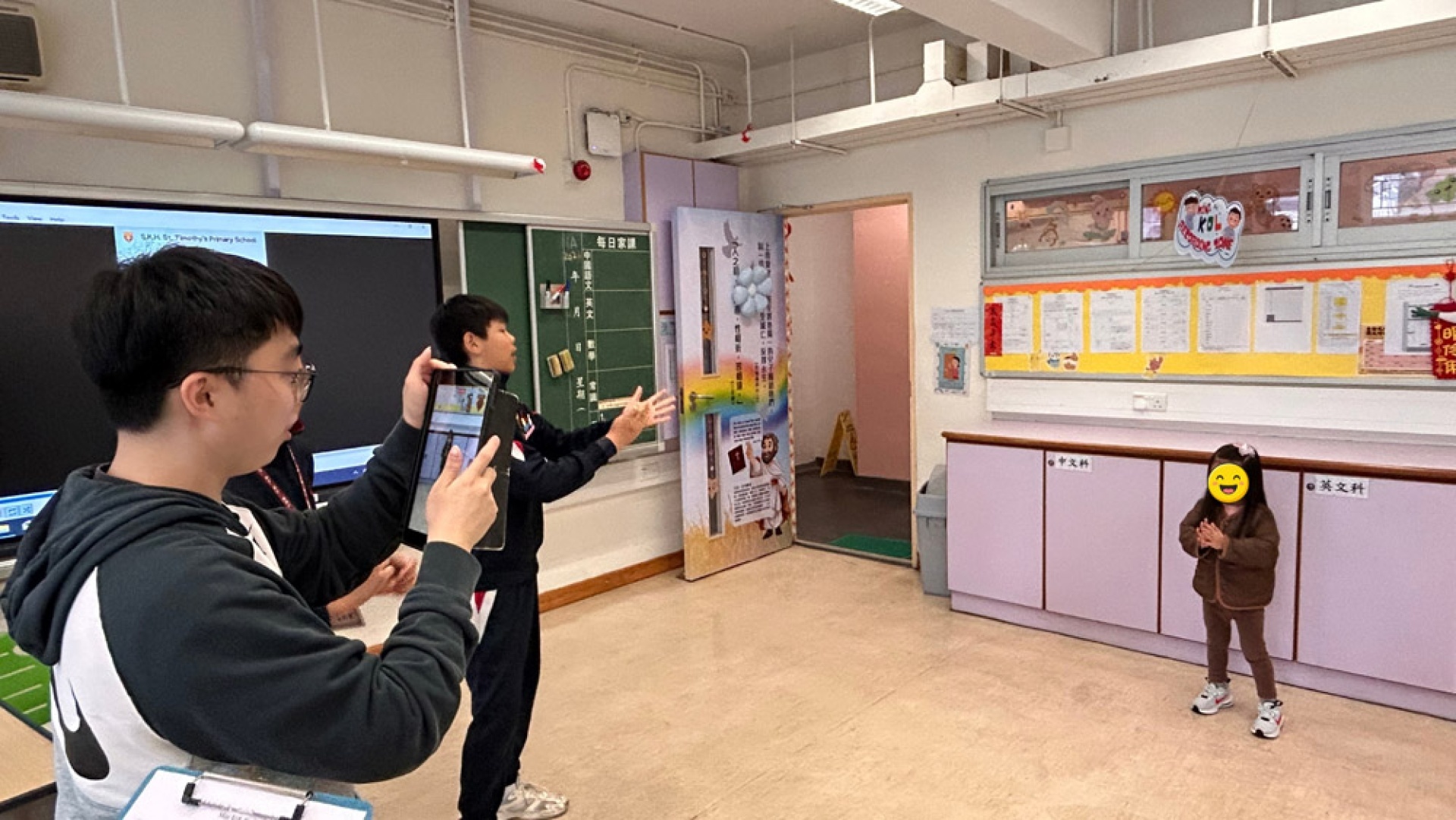 The Mini KOL Studio attracted tremendous interest from participants. Student ambassadors assisted children in filming short video clips featuring various action verbs. In front of the camera, children confidently demonstrated different actions, making the learning process both dynamic and memorable.