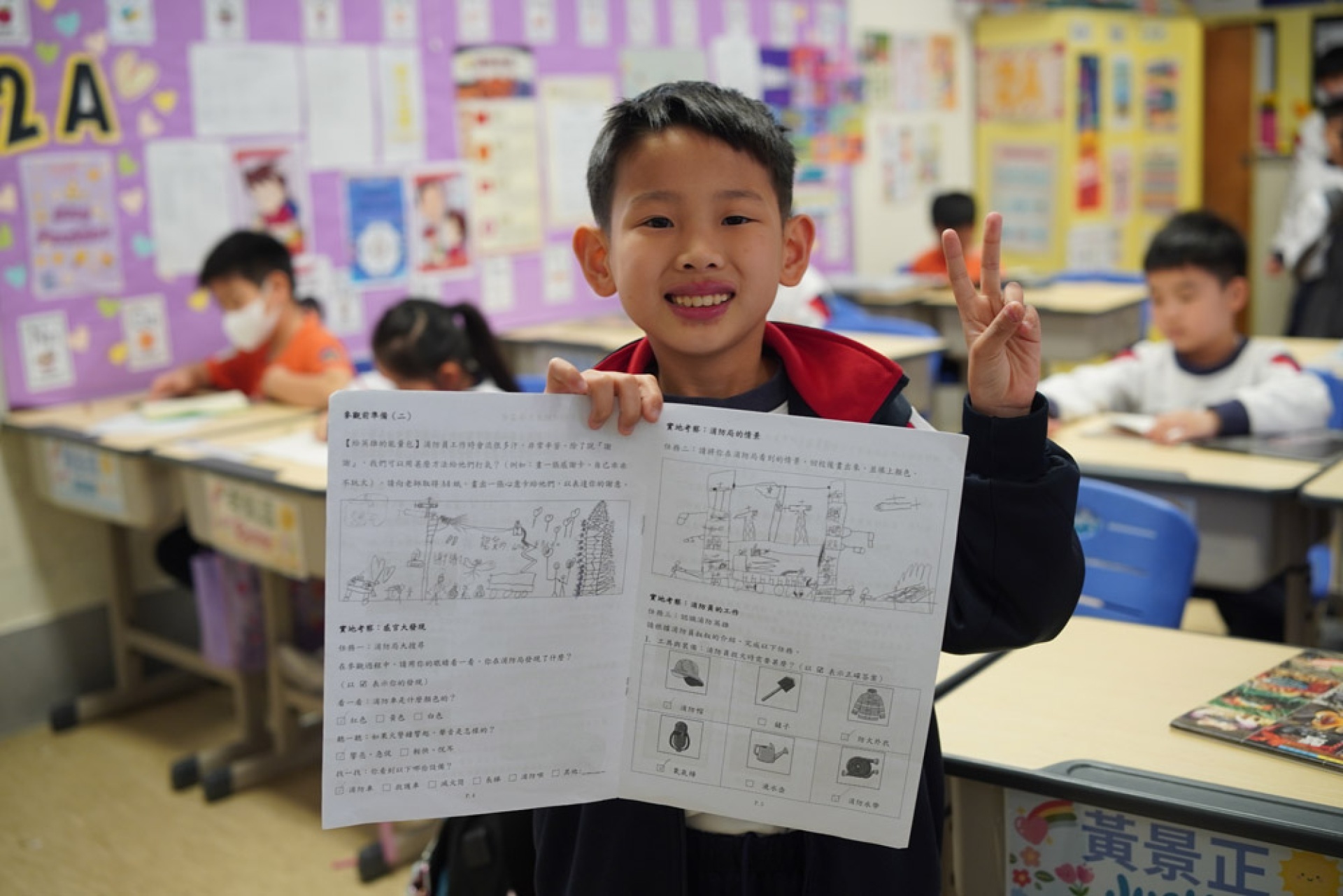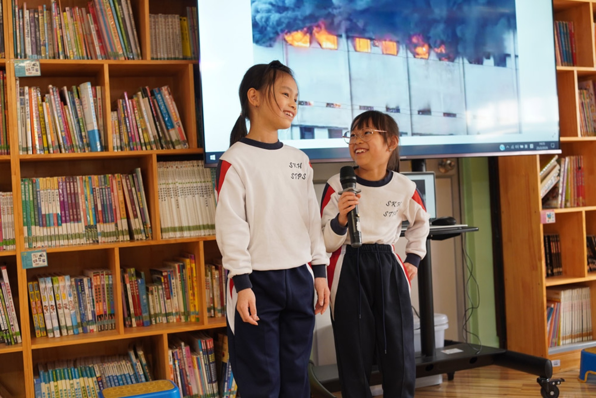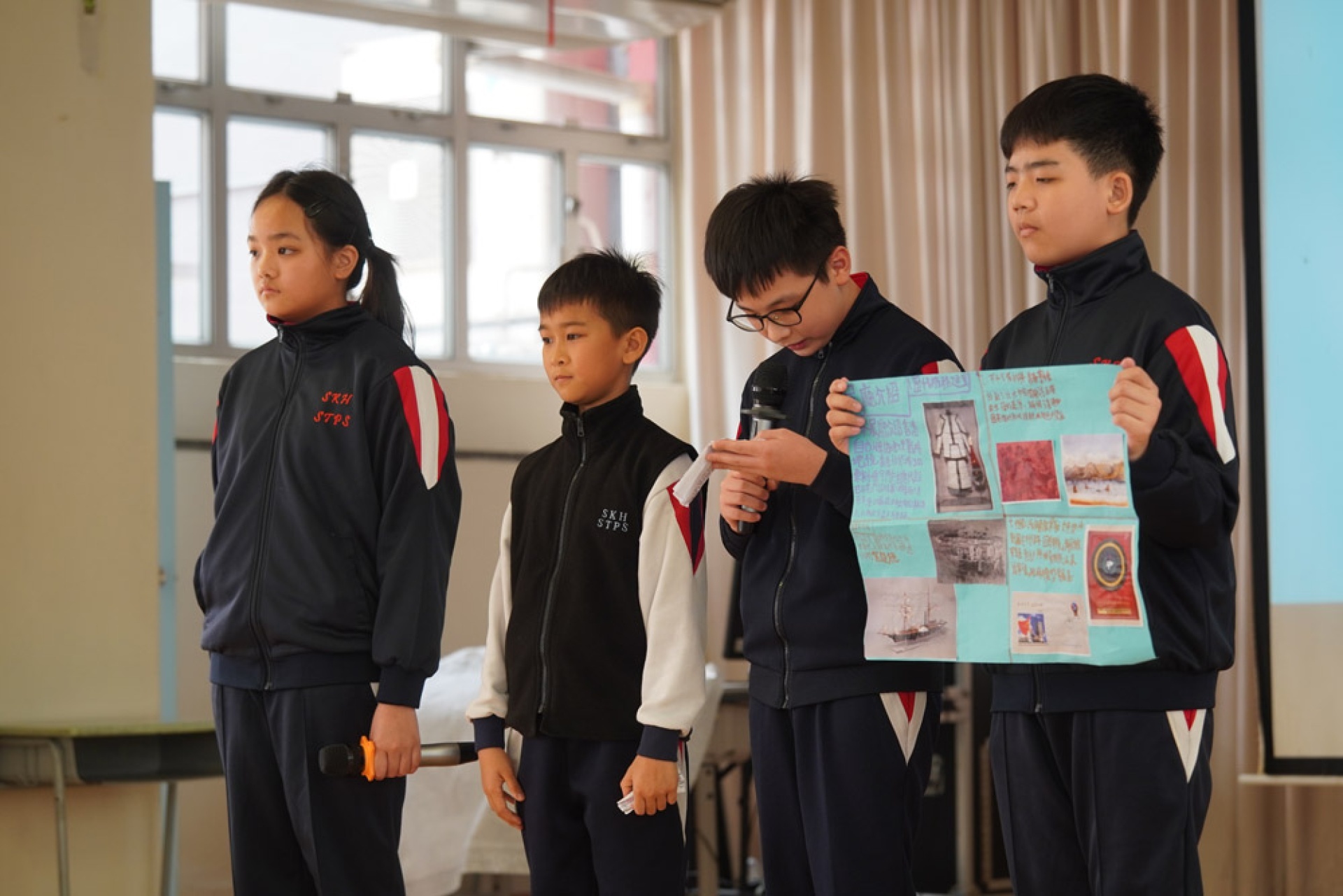 One student, while presenting on their visit to the Hung Hom Fire Station, shared their concern about the earlier fire at Hung Fuk Court and called on everyone to pay attention to fire safety and disaster drills, reflecting their ability to connect learning with current events in their lives and demonstrating a basic sense of public safety and civic responsibility.