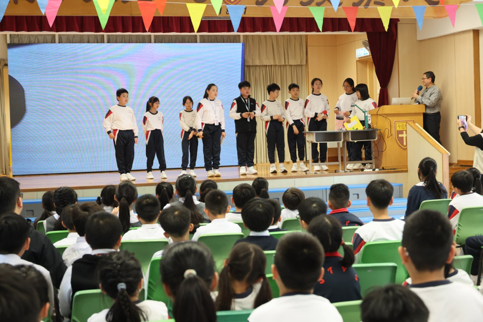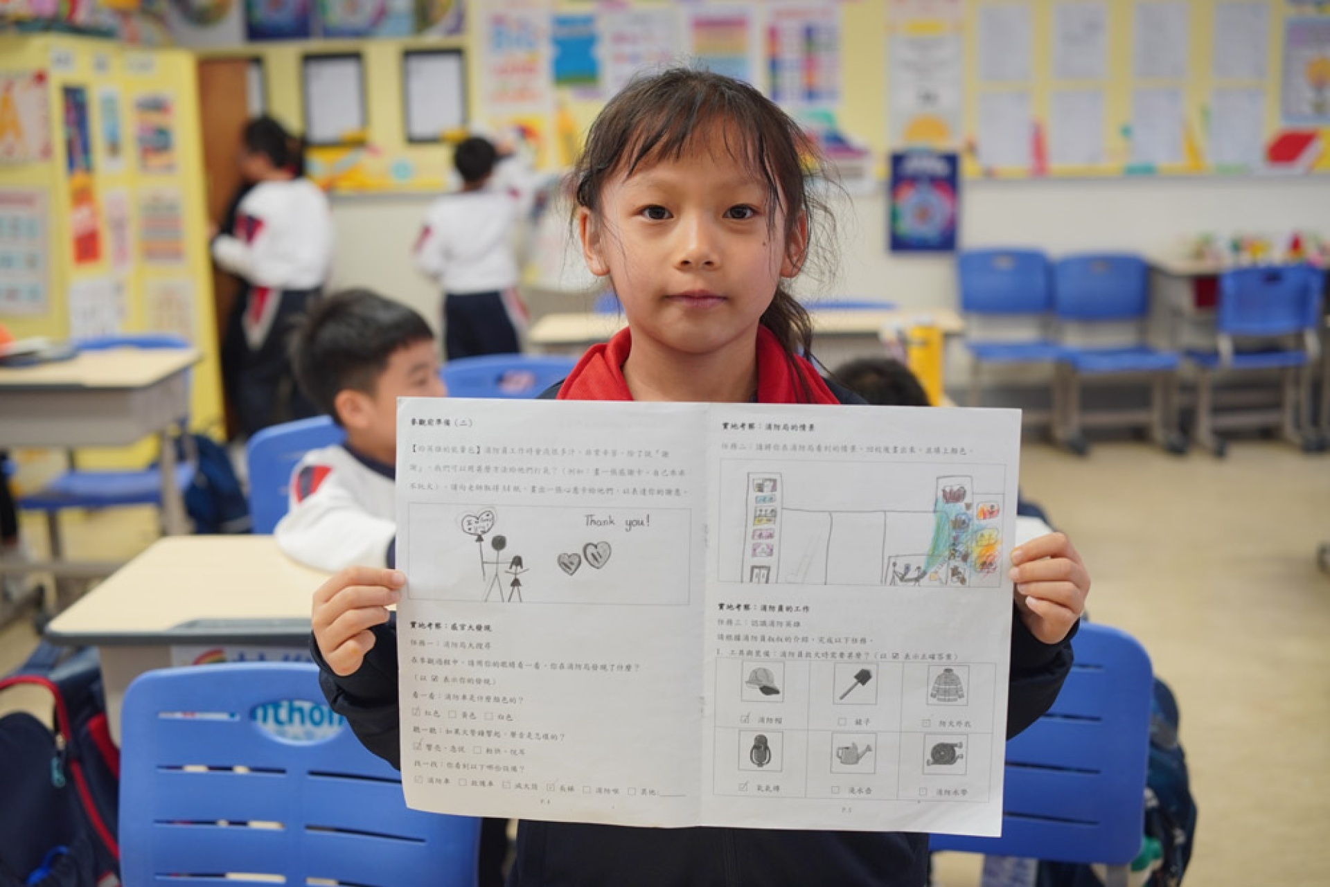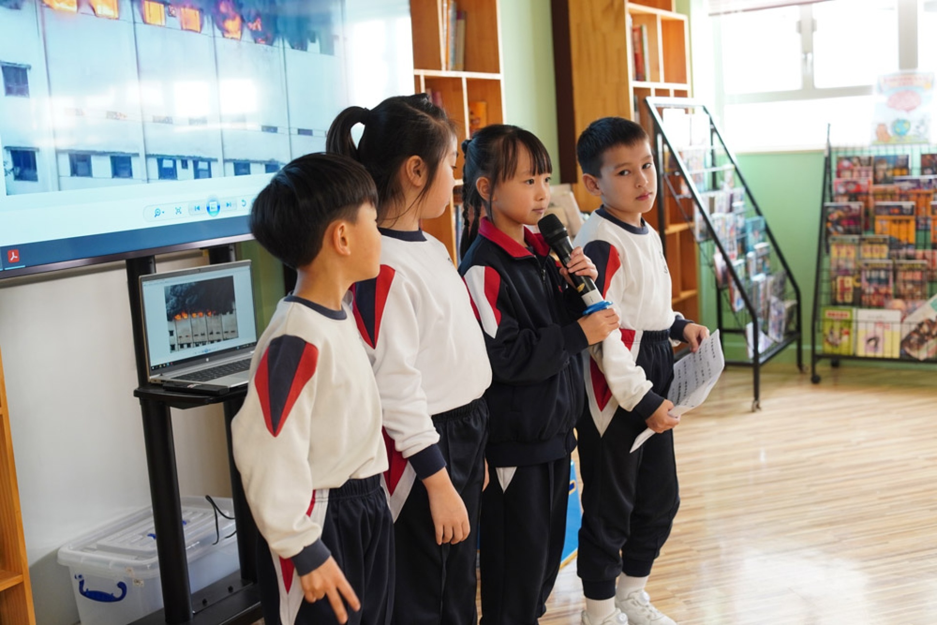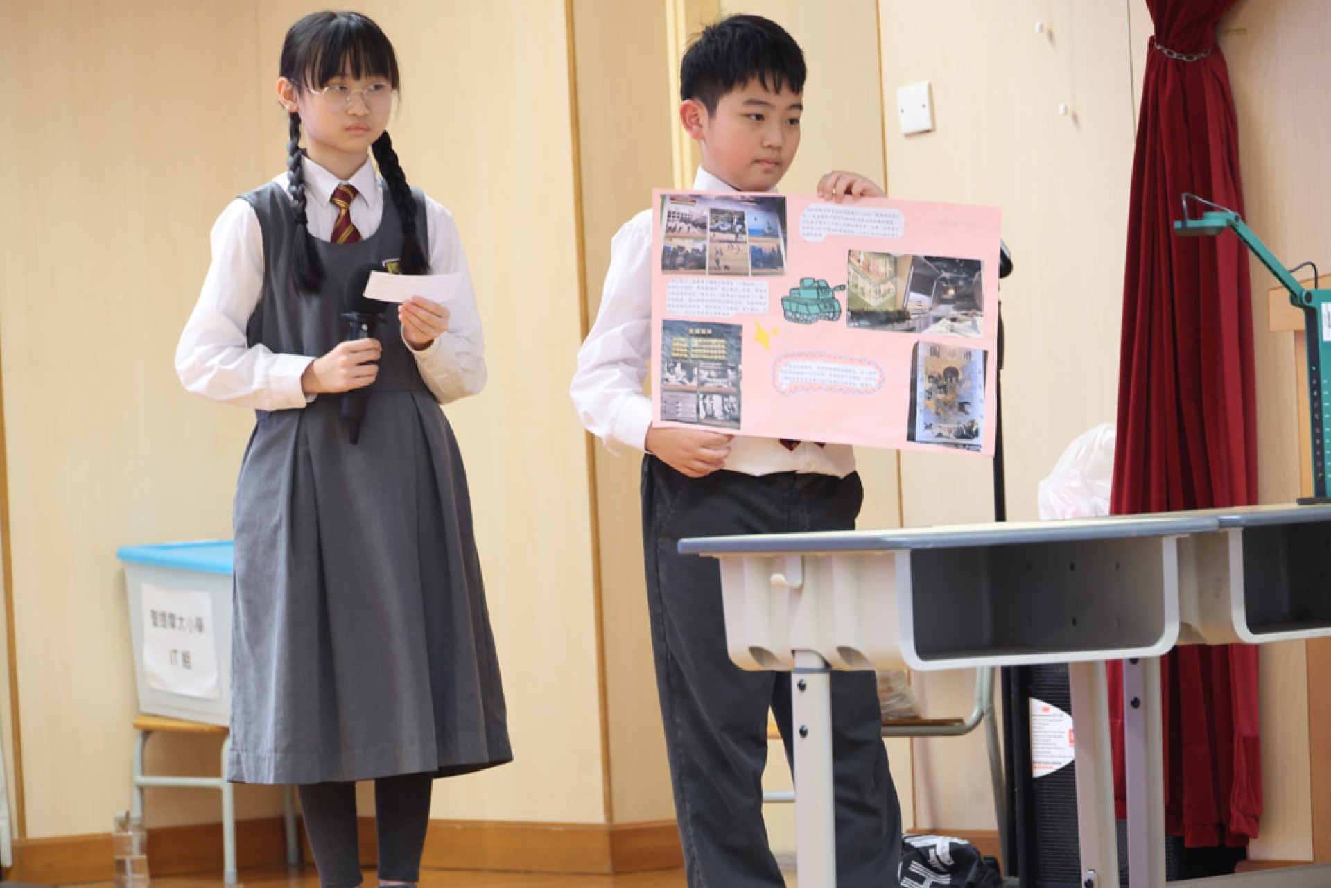 One student, while presenting on their visit to the Hung Hom Fire Station, shared their concern about the earlier fire at Hung Fuk Court and called on everyone to pay attention to fire safety and disaster drills, reflecting their ability to connect learning with current events in their lives and demonstrating a basic sense of public safety and civic responsibility.