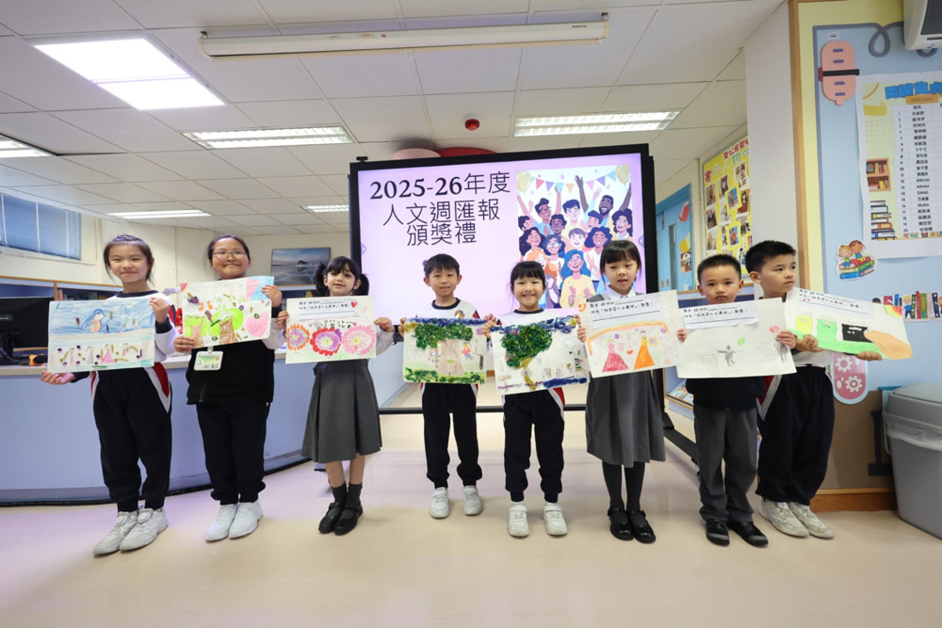 • Displaying student-made report boards and worksheets;