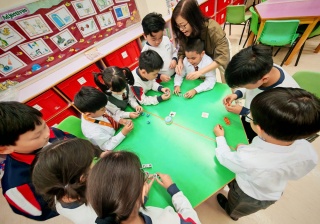 Game Overview: Divide students into 4 teams. Place a work card in the centre of the playing area. Team members must work together to find their letter blocks and spell the word on the card. The first team to complete the spelling and ring the bell at the centre wins the round and collects the word card. After 20 rounds, the team with the most cards will be crowned the overall winner and receive a small prize as a reward. Students feel very excited and learn happily during joining the activity.