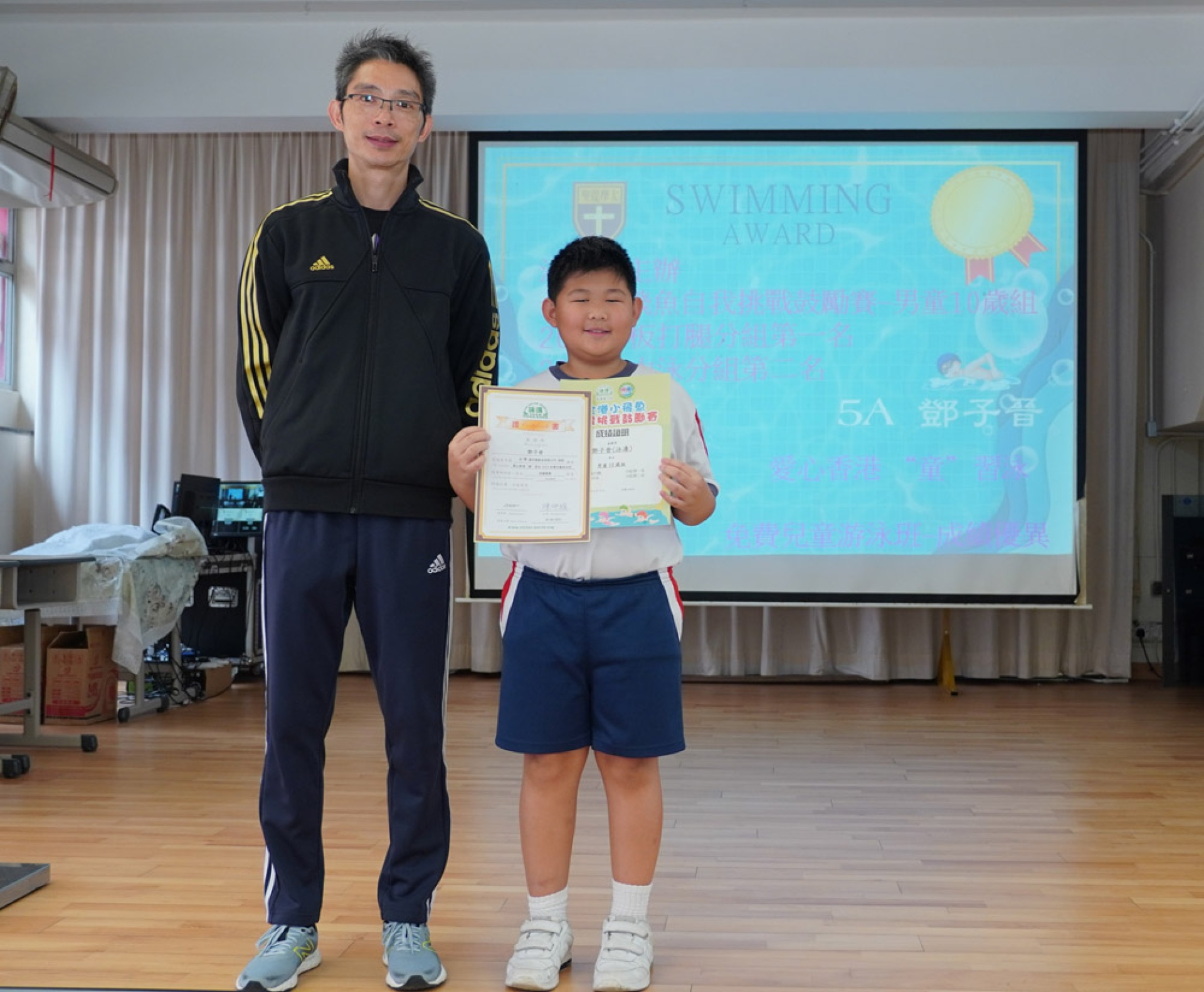 A)泳濤會主辦全港小飛魚自我挑戰鼓勵賽-男童10歲組 20米持板打腿分組第一名及20米自由泳分組第二名