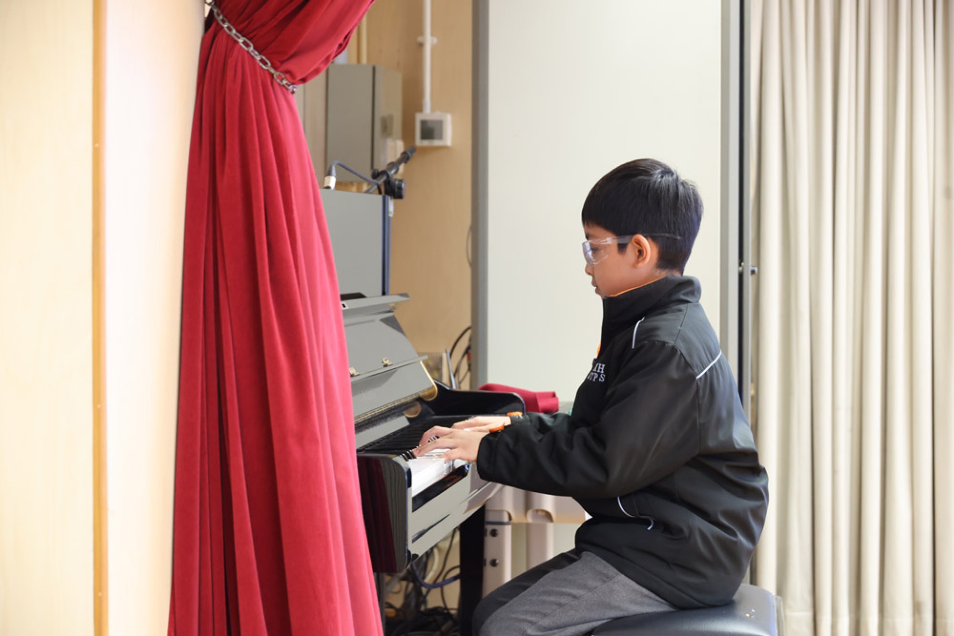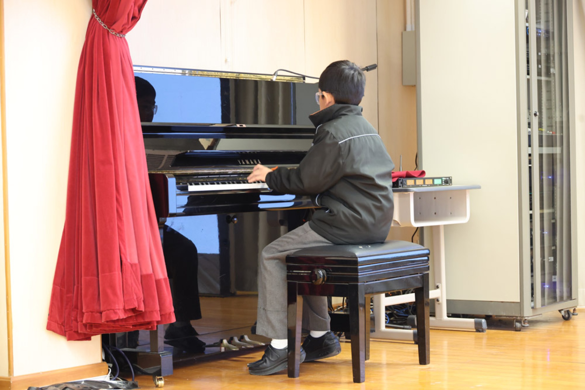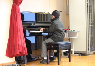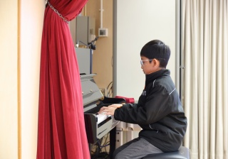 5A 班的 Jericho 同學指尖靈動地跳躍在鋼琴鍵上,深情演奏流行的樂曲《GOLDEN》。琴聲時而明亮,時而深沉,節奏感十足且富有張力。他將自身的情感與樂譜完美結合,用優美的旋律讓全場沉浸在歡樂的氛圍中。
