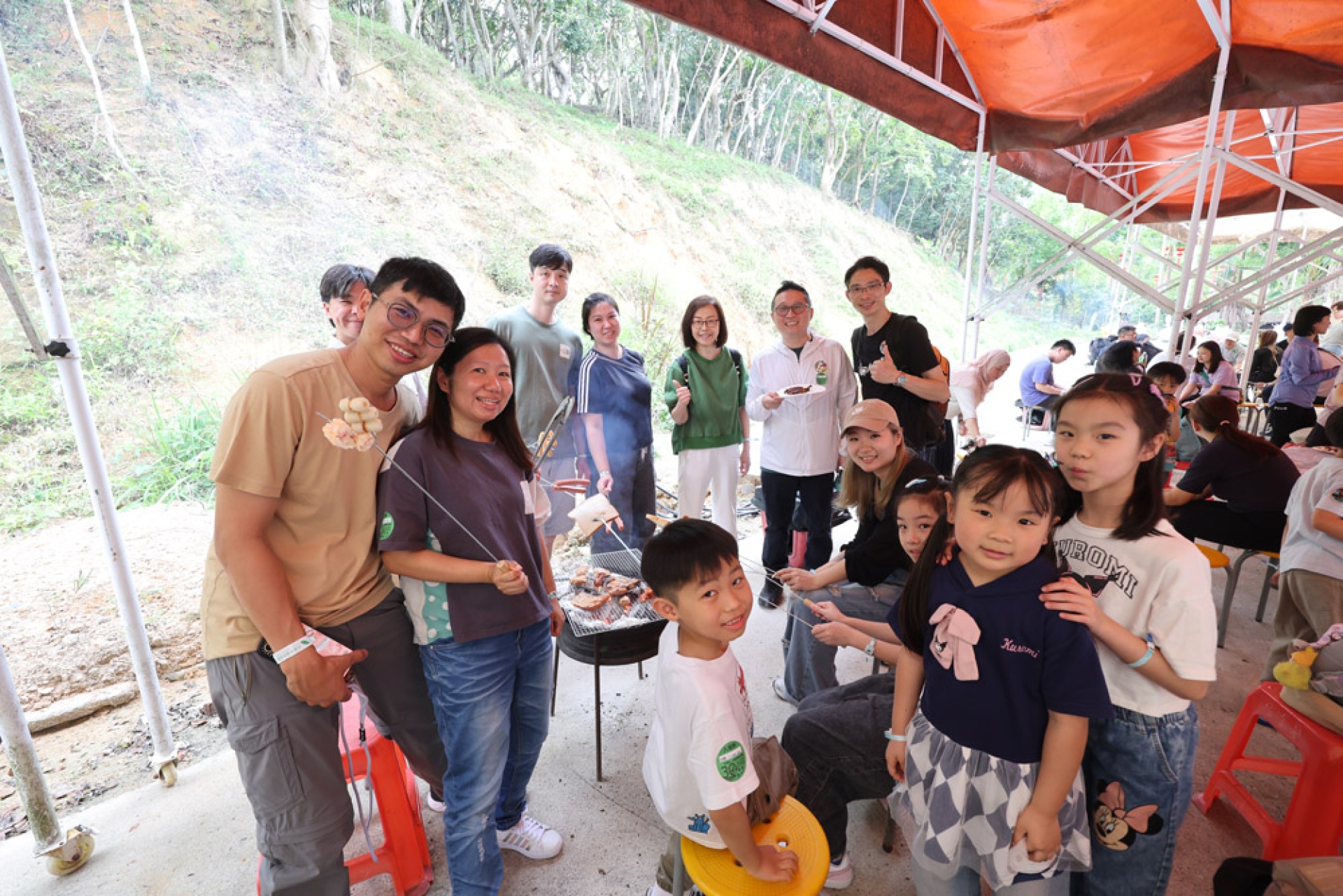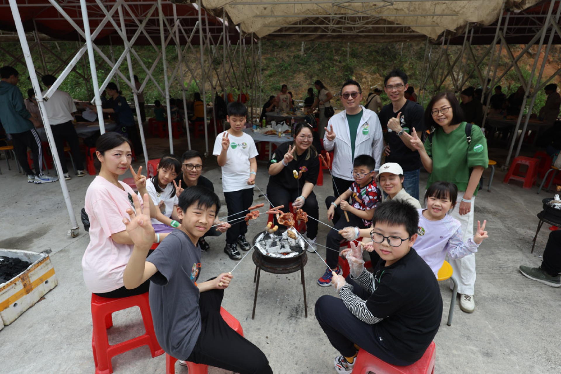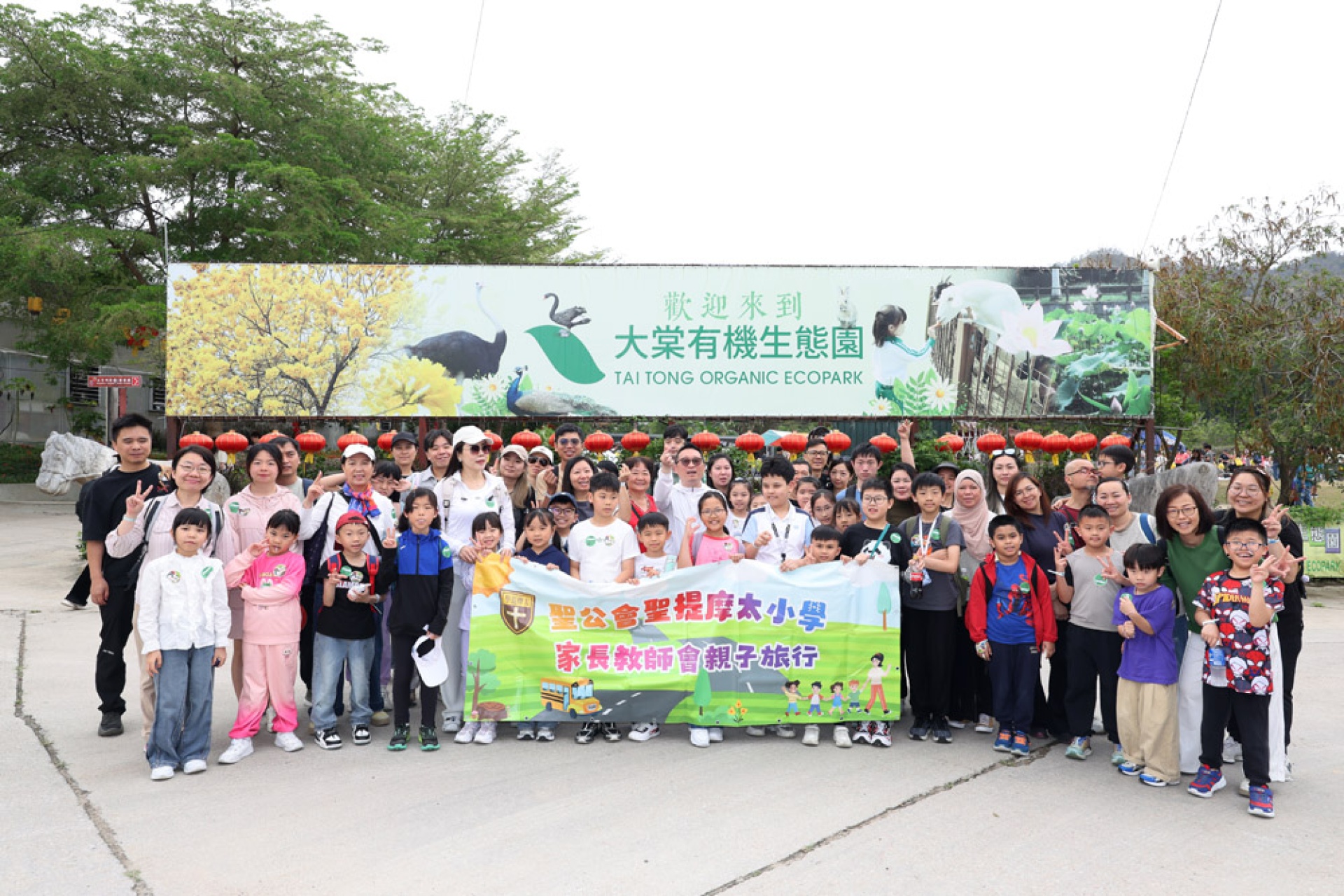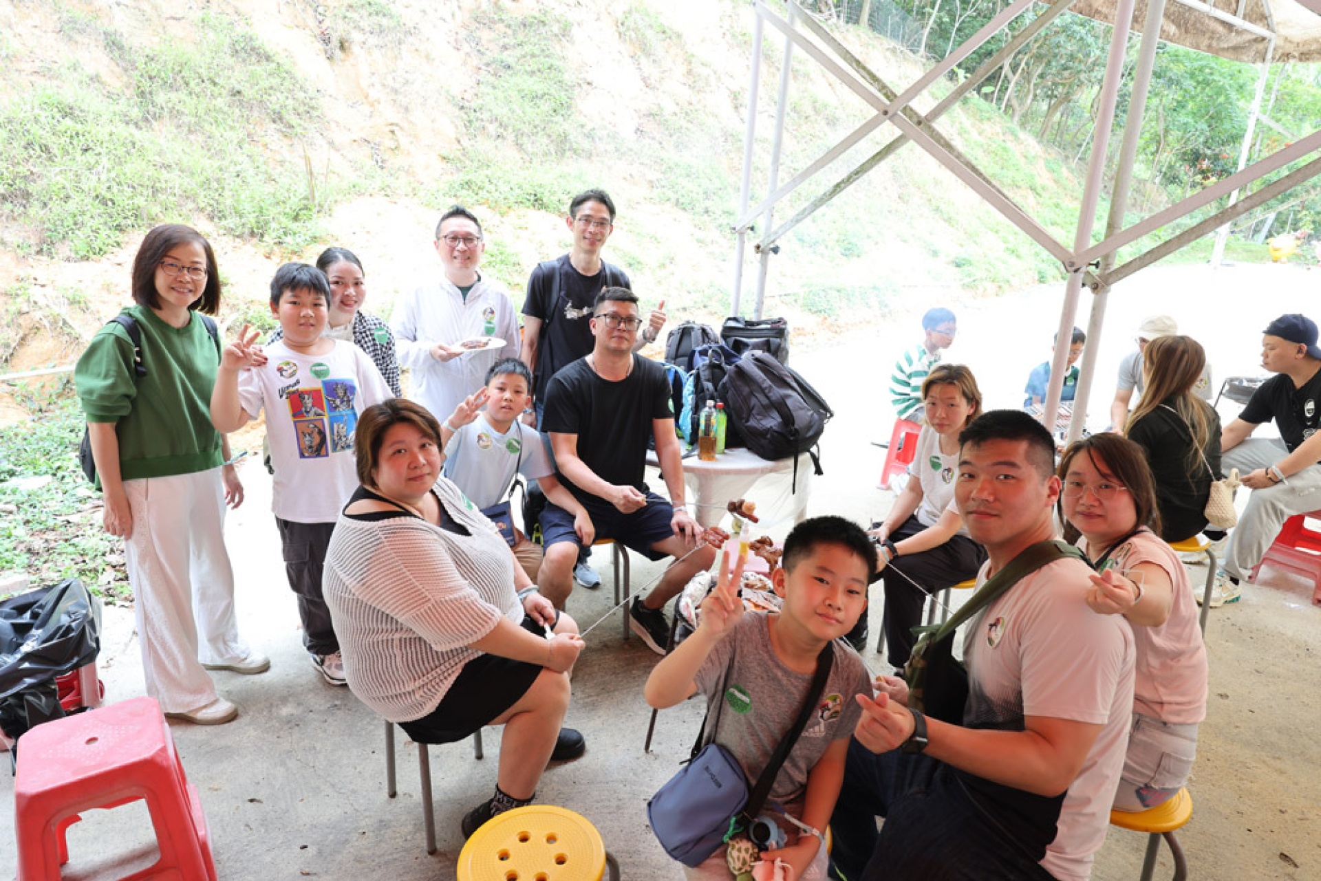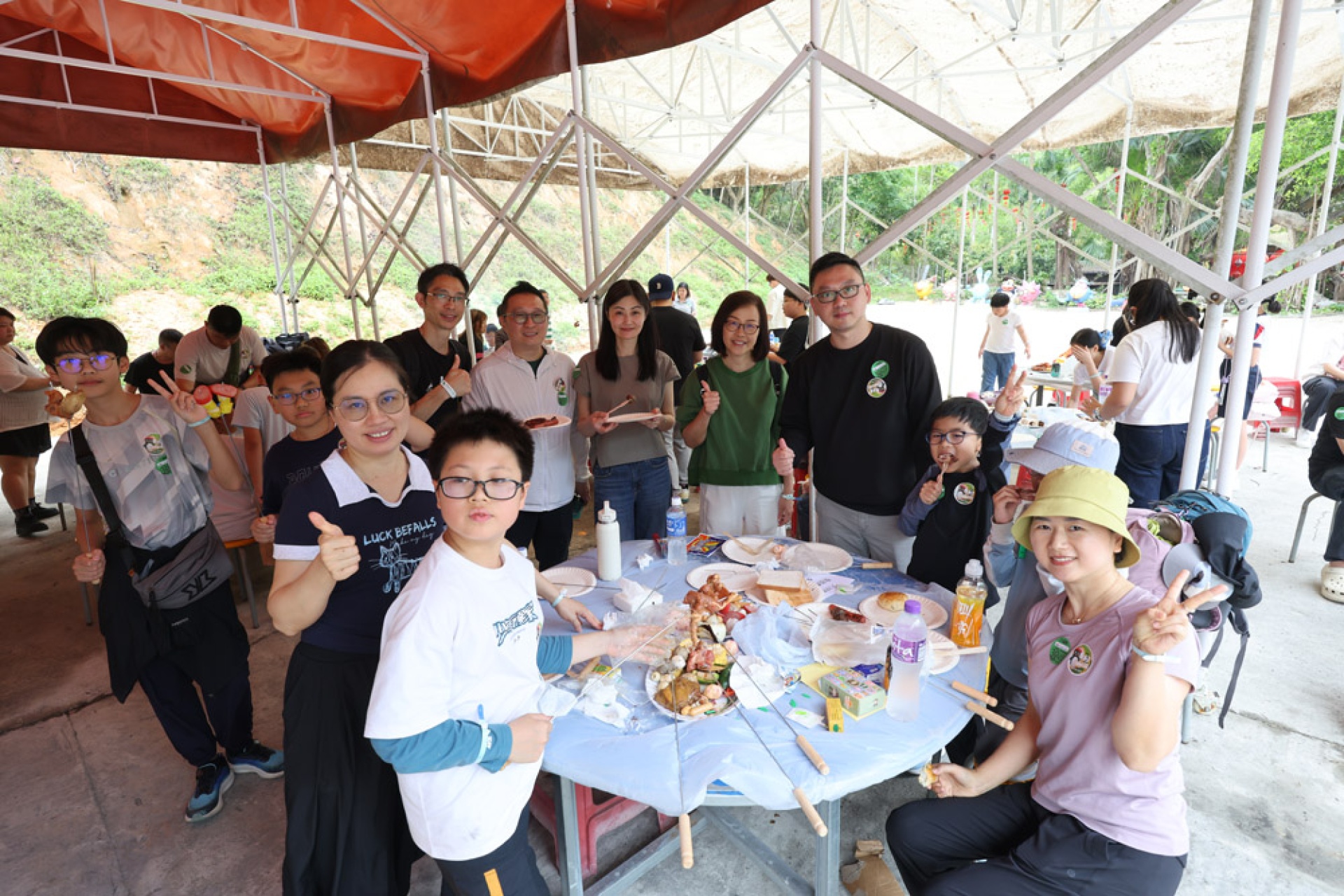 當日天朗氣清,家長和學生們一早便滿懷期待地出發。首站來到新田大夫第古蹟,孩子們圍著導賞員細心聆聽,家長也紛紛與子女一同探究歷史痕跡,不時低頭討論,投入之情溢於言表。轉抵大棠有機生態園後,氣氛更見熱鬧——親子合力餵飼小羊、齊齊踏單車,歡笑聲此起彼落。燒烤午餐時,家長忙著生火塗蜜糖,孩子則幫忙遞食材,你一口我一串,分享美食之餘更分享日常趣事。只見每張餐桌前都是大手疊小手的溫馨畫面,人人專注享受過程,更有學生主動為爸媽遞上紙巾。最後,回程車上各人仍回味無窮,足見這次親子旅行真正讓彼此的心拉得更近。