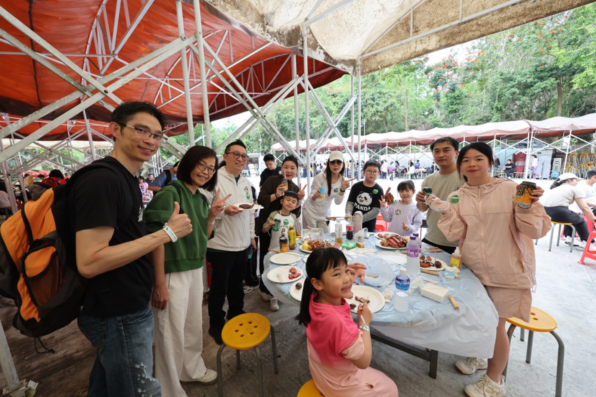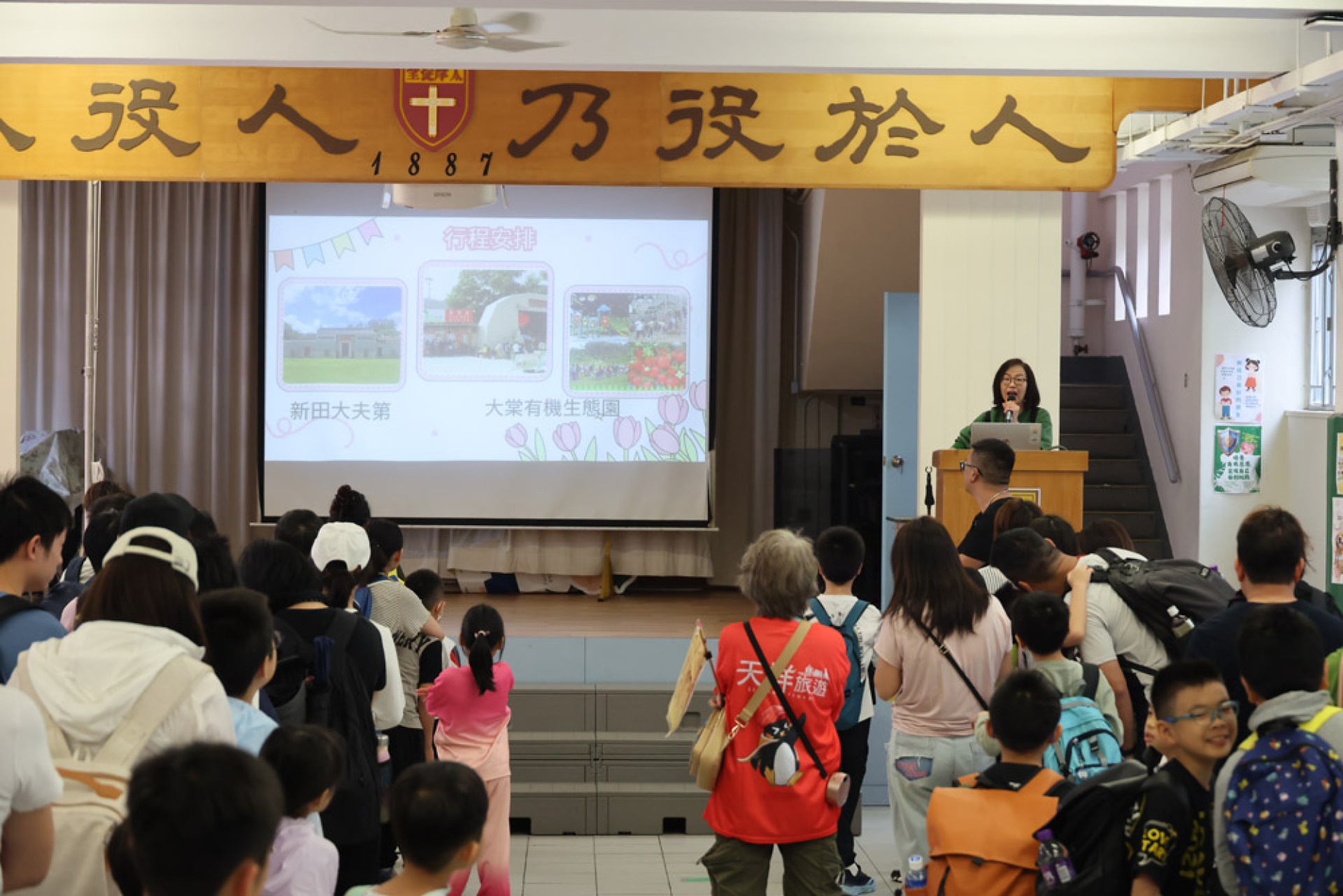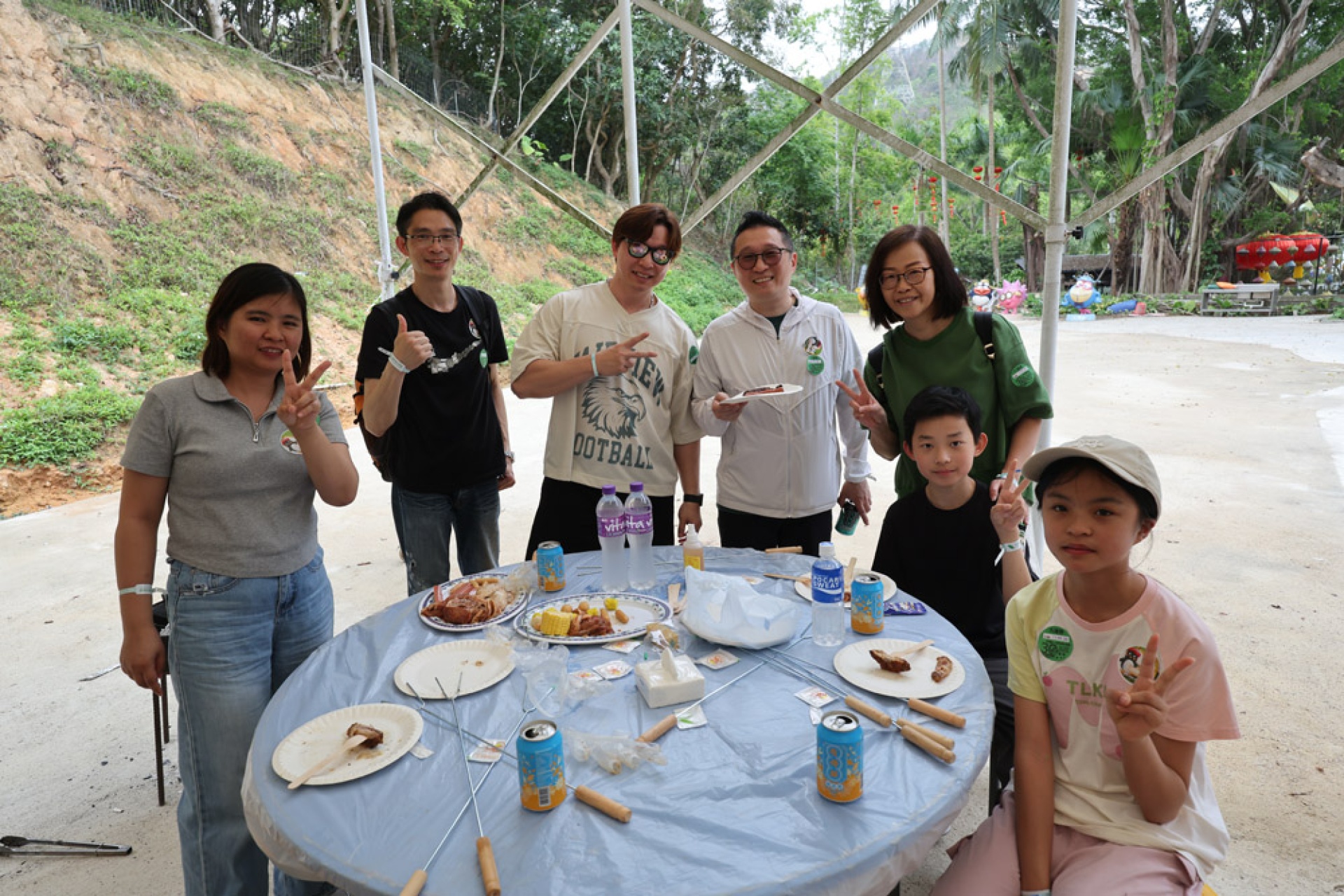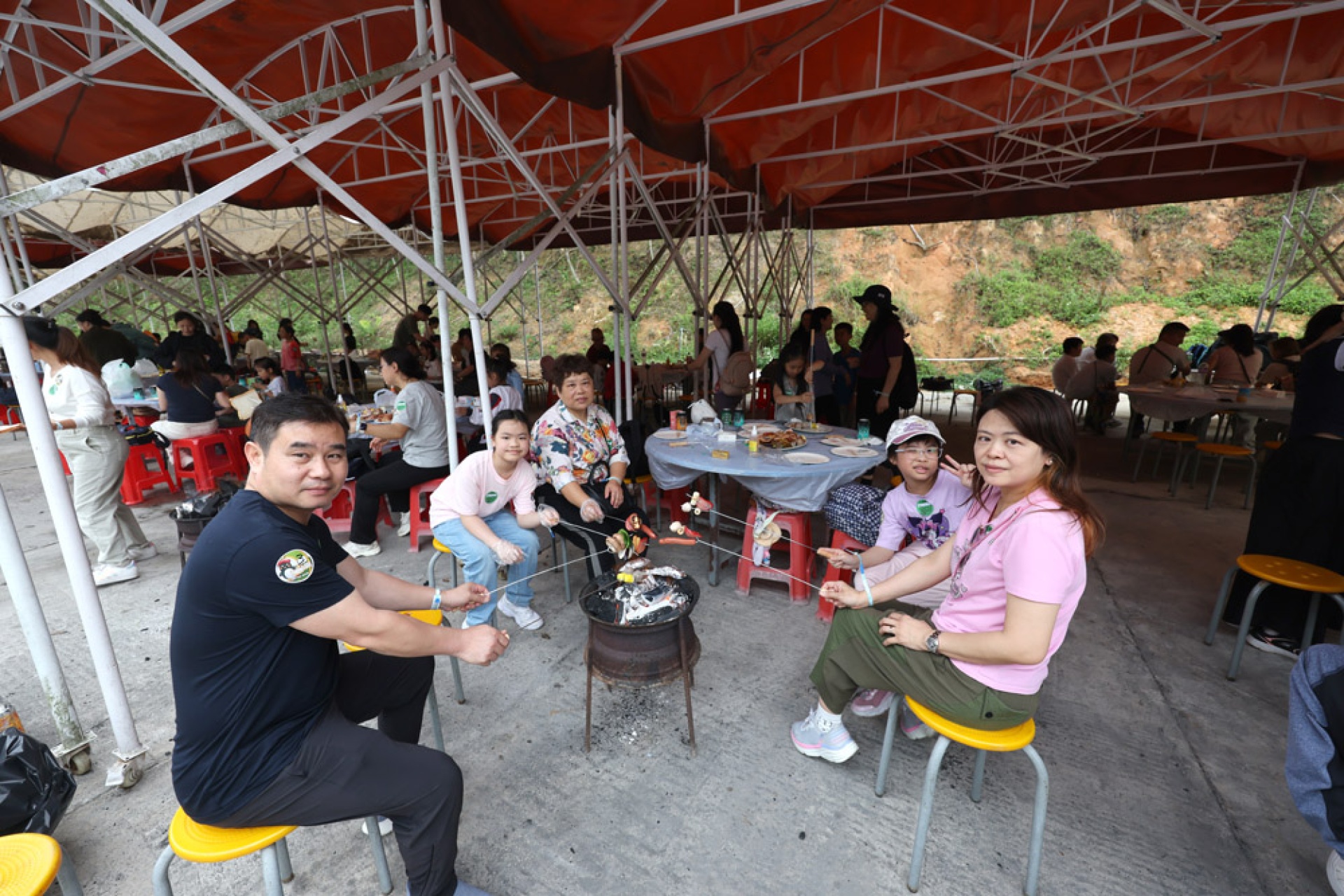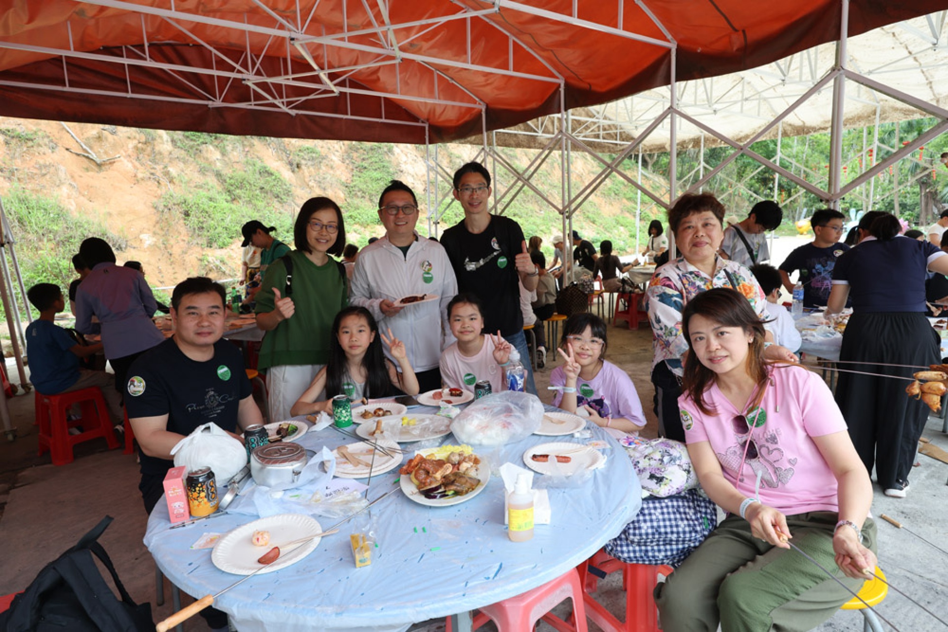 當日天朗氣清,家長和學生們一早便滿懷期待地出發。首站來到新田大夫第古蹟,孩子們圍著導賞員細心聆聽,家長也紛紛與子女一同探究歷史痕跡,不時低頭討論,投入之情溢於言表。轉抵大棠有機生態園後,氣氛更見熱鬧——親子合力餵飼小羊、齊齊踏單車,歡笑聲此起彼落。燒烤午餐時,家長忙著生火塗蜜糖,孩子則幫忙遞食材,你一口我一串,分享美食之餘更分享日常趣事。只見每張餐桌前都是大手疊小手的溫馨畫面,人人專注享受過程,更有學生主動為爸媽遞上紙巾。最後,回程車上各人仍回味無窮,足見這次親子旅行真正讓彼此的心拉得更近。