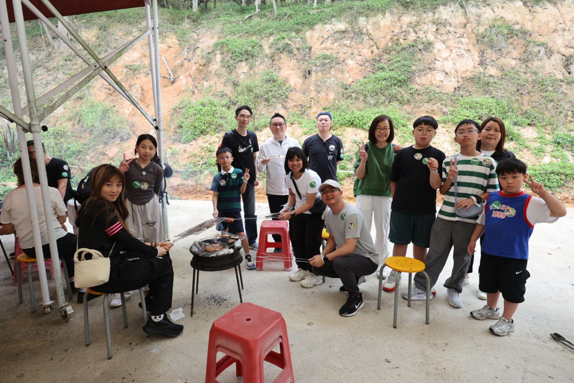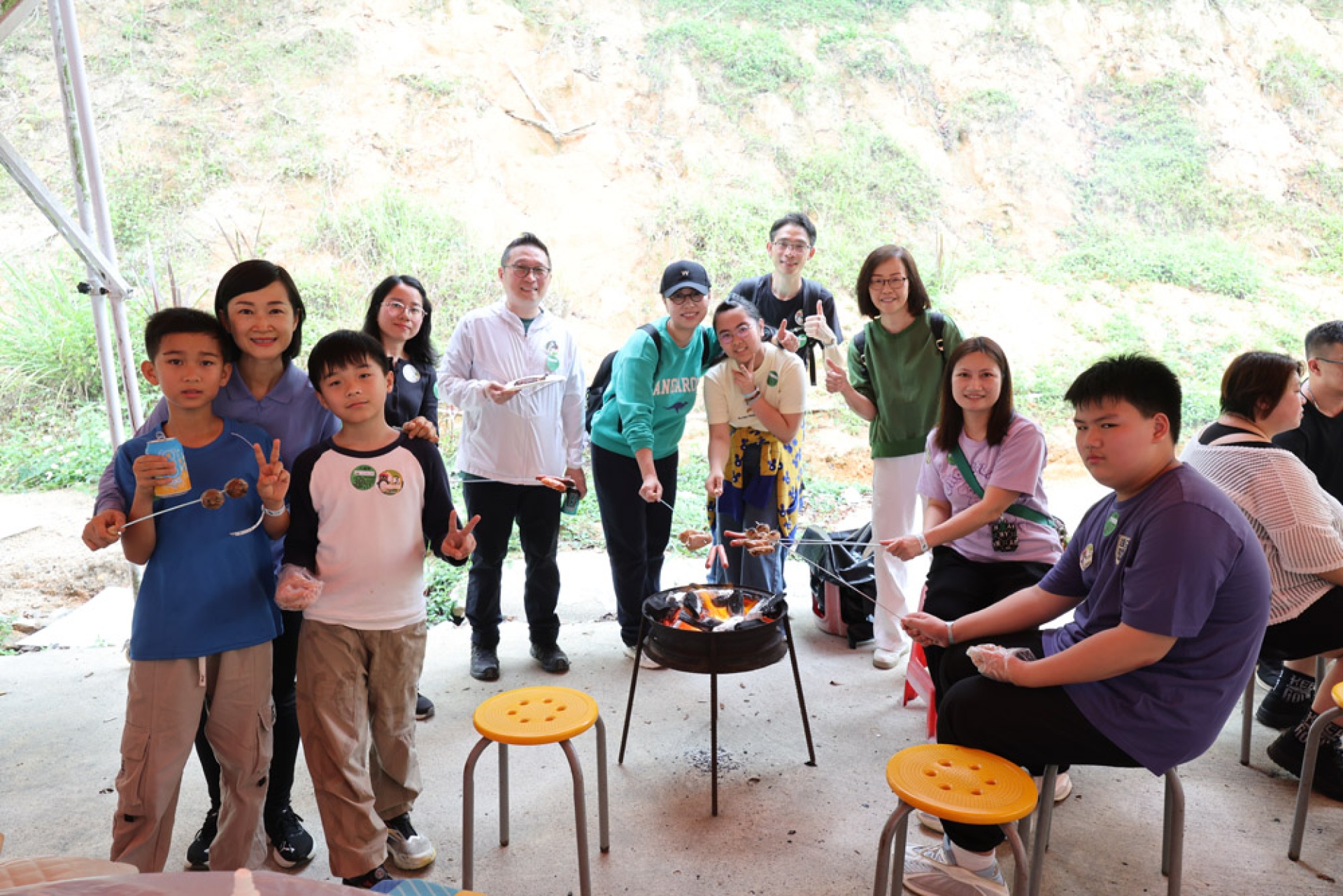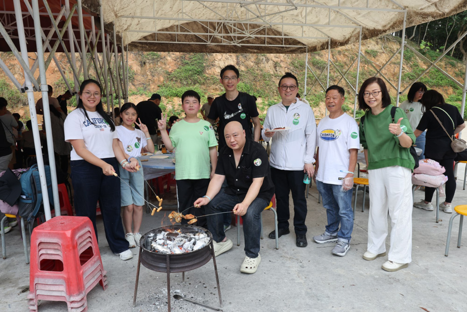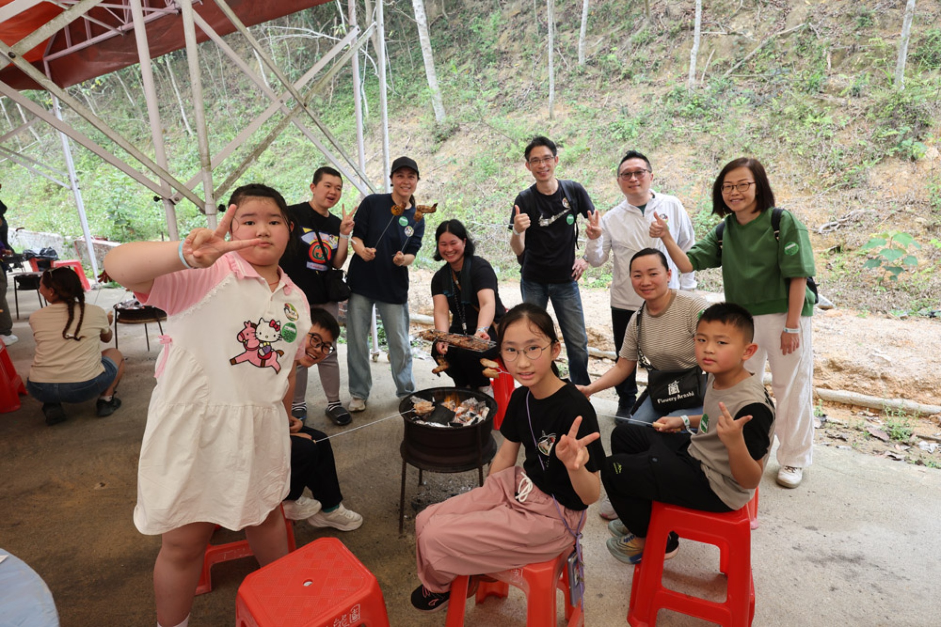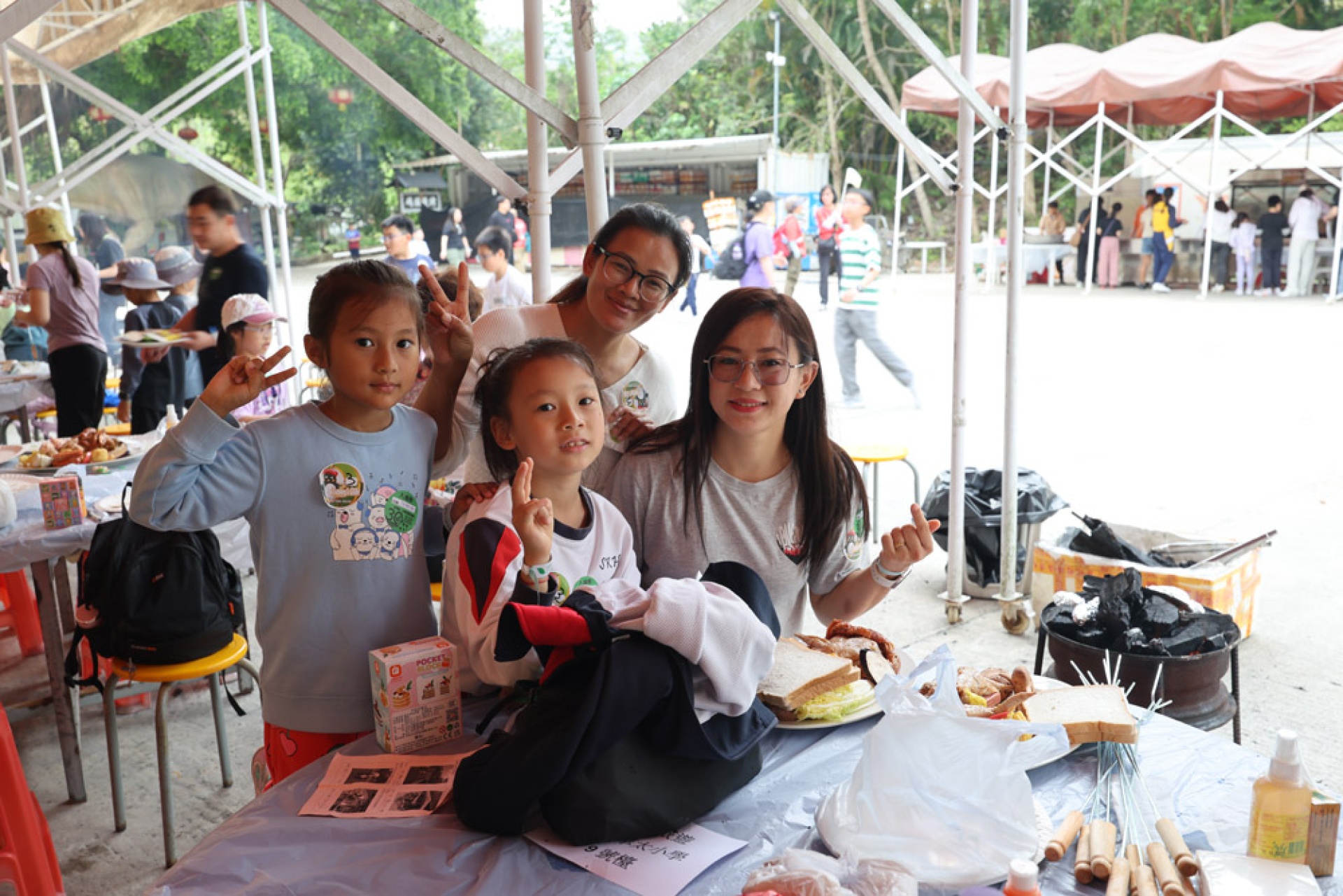 當日天朗氣清,家長和學生們一早便滿懷期待地出發。首站來到新田大夫第古蹟,孩子們圍著導賞員細心聆聽,家長也紛紛與子女一同探究歷史痕跡,不時低頭討論,投入之情溢於言表。轉抵大棠有機生態園後,氣氛更見熱鬧——親子合力餵飼小羊、齊齊踏單車,歡笑聲此起彼落。燒烤午餐時,家長忙著生火塗蜜糖,孩子則幫忙遞食材,你一口我一串,分享美食之餘更分享日常趣事。只見每張餐桌前都是大手疊小手的溫馨畫面,人人專注享受過程,更有學生主動為爸媽遞上紙巾。最後,回程車上各人仍回味無窮,足見這次親子旅行真正讓彼此的心拉得更近。