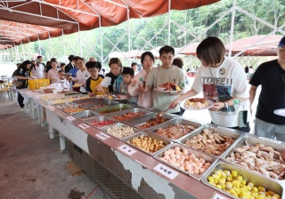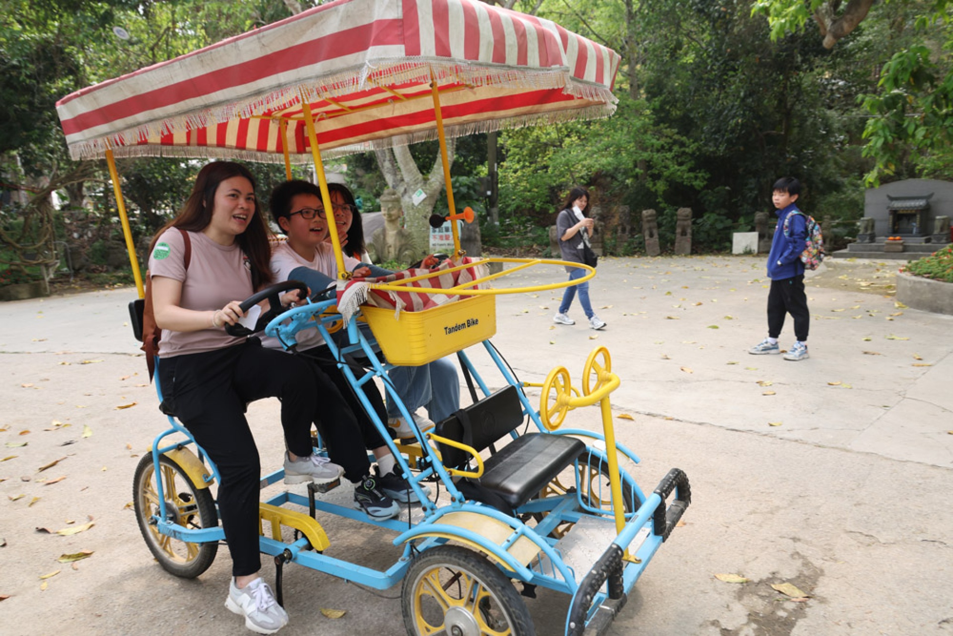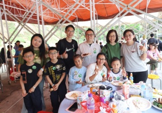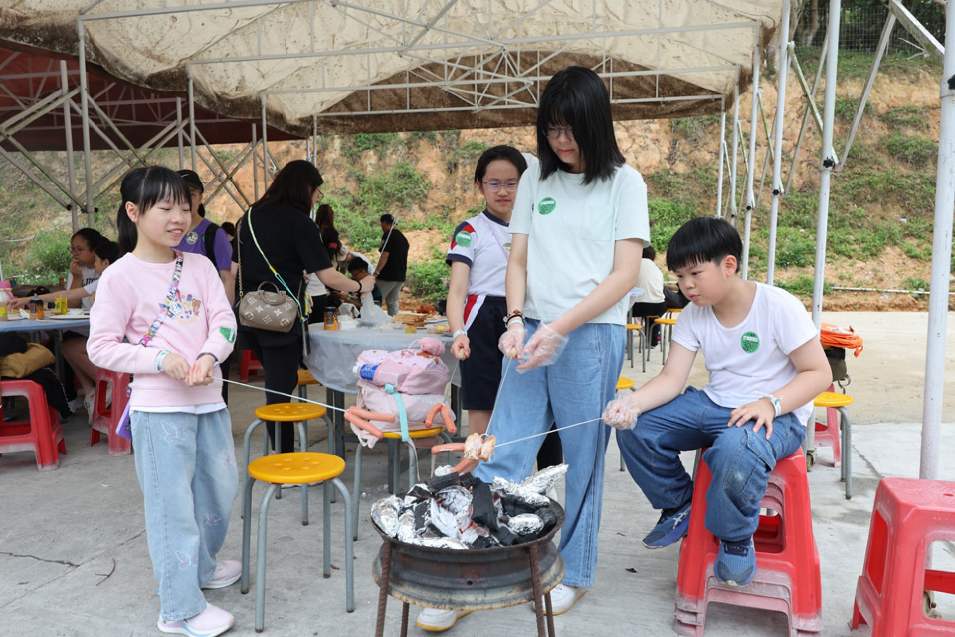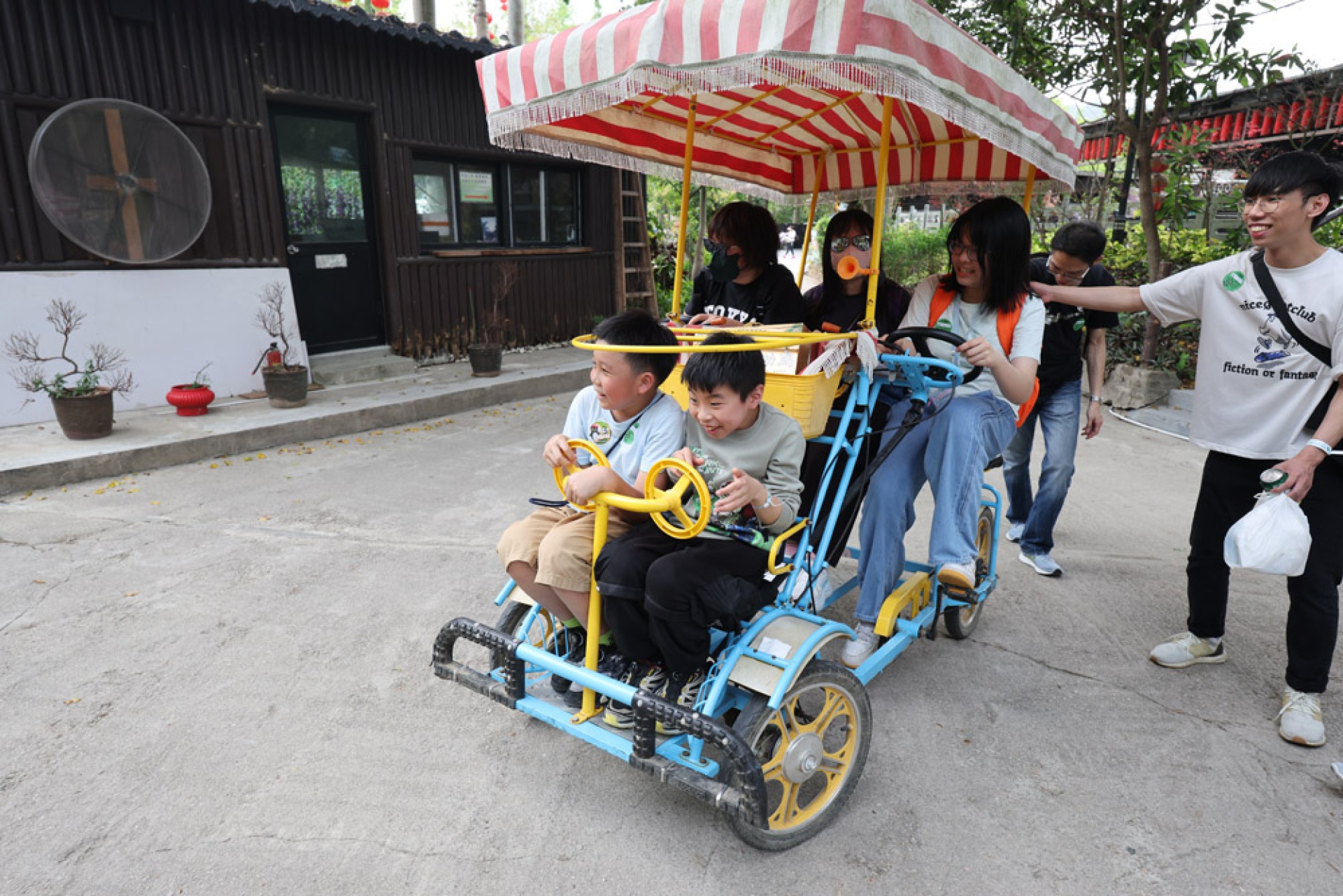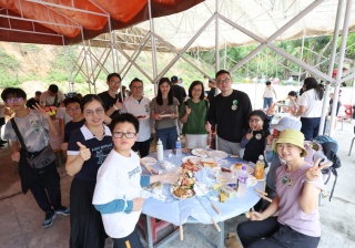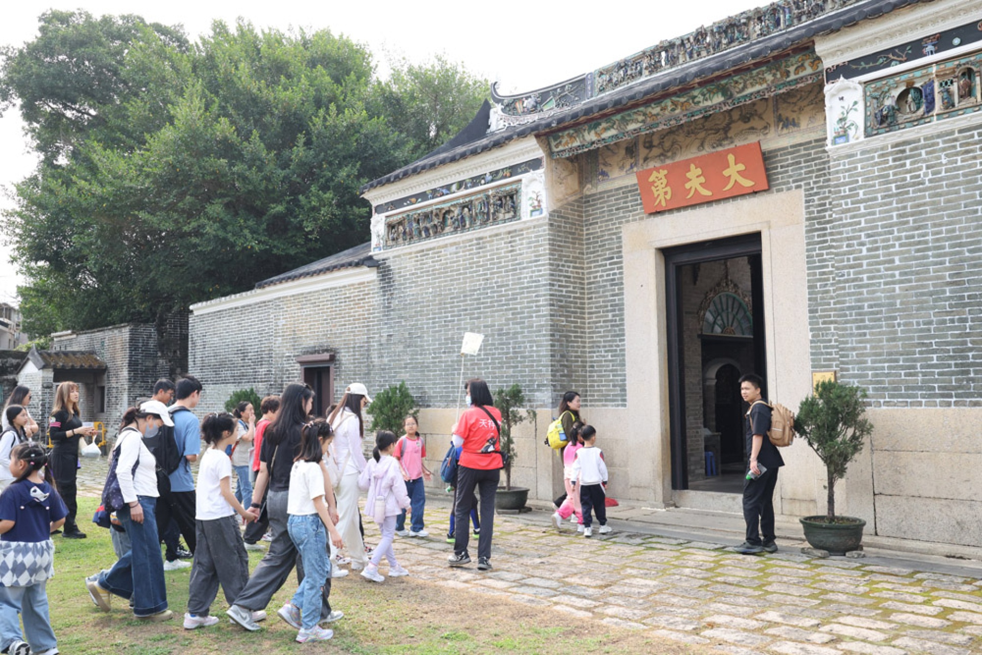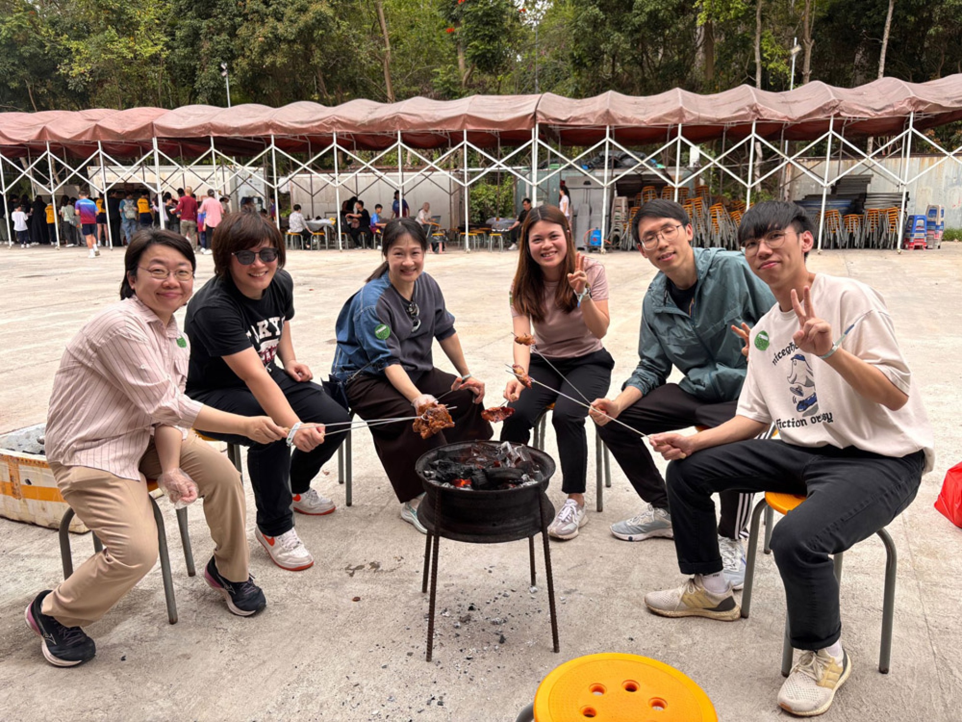 當日天朗氣清,家長和學生們一早便滿懷期待地出發。首站來到新田大夫第古蹟,孩子們圍著導賞員細心聆聽,家長也紛紛與子女一同探究歷史痕跡,不時低頭討論,投入之情溢於言表。轉抵大棠有機生態園後,氣氛更見熱鬧——親子合力餵飼小羊、齊齊踏單車,歡笑聲此起彼落。燒烤午餐時,家長忙著生火塗蜜糖,孩子則幫忙遞食材,你一口我一串,分享美食之餘更分享日常趣事。只見每張餐桌前都是大手疊小手的溫馨畫面,人人專注享受過程,更有學生主動為爸媽遞上紙巾。最後,回程車上各人仍回味無窮,足見這次親子旅行真正讓彼此的心拉得更近。