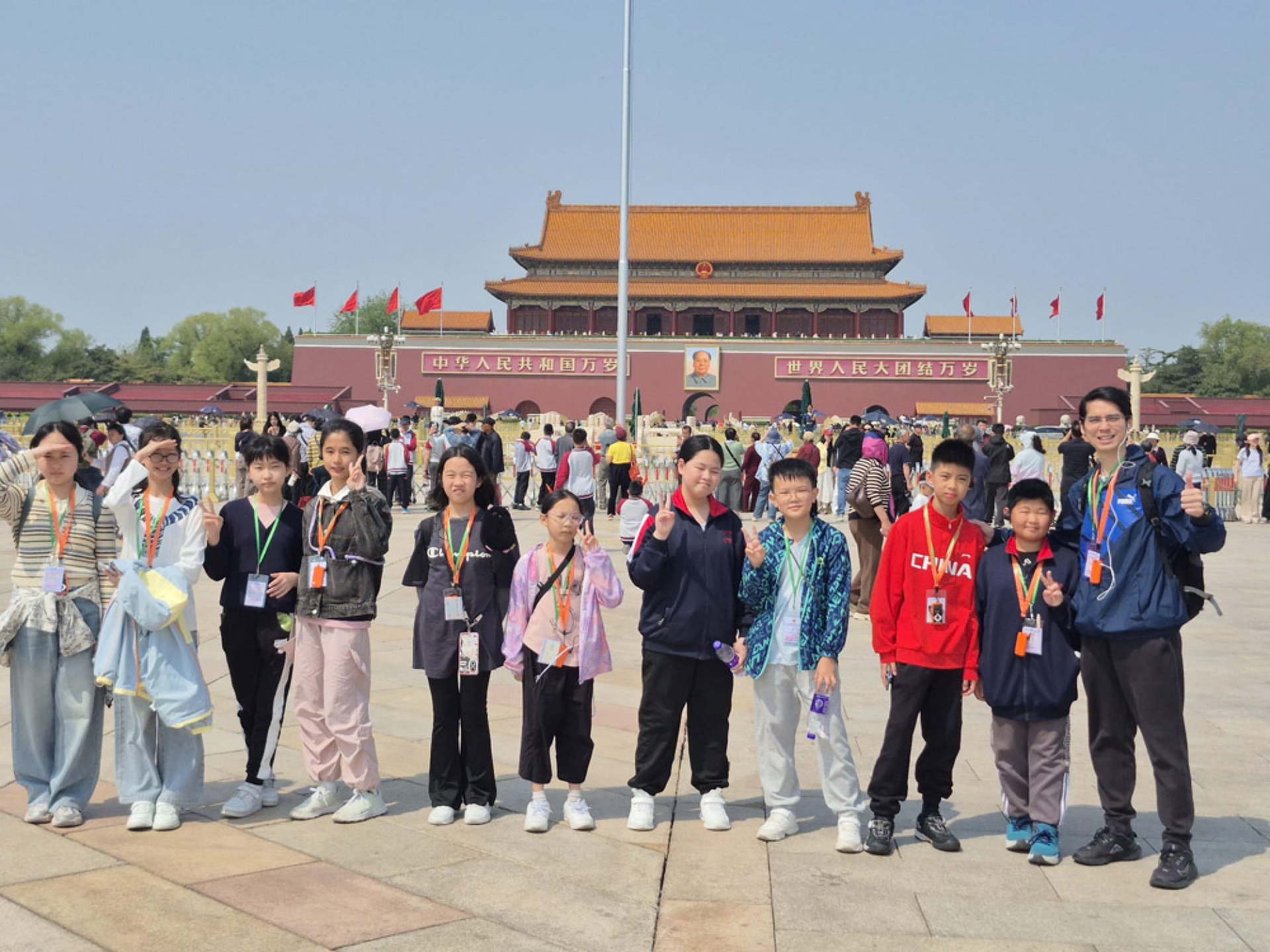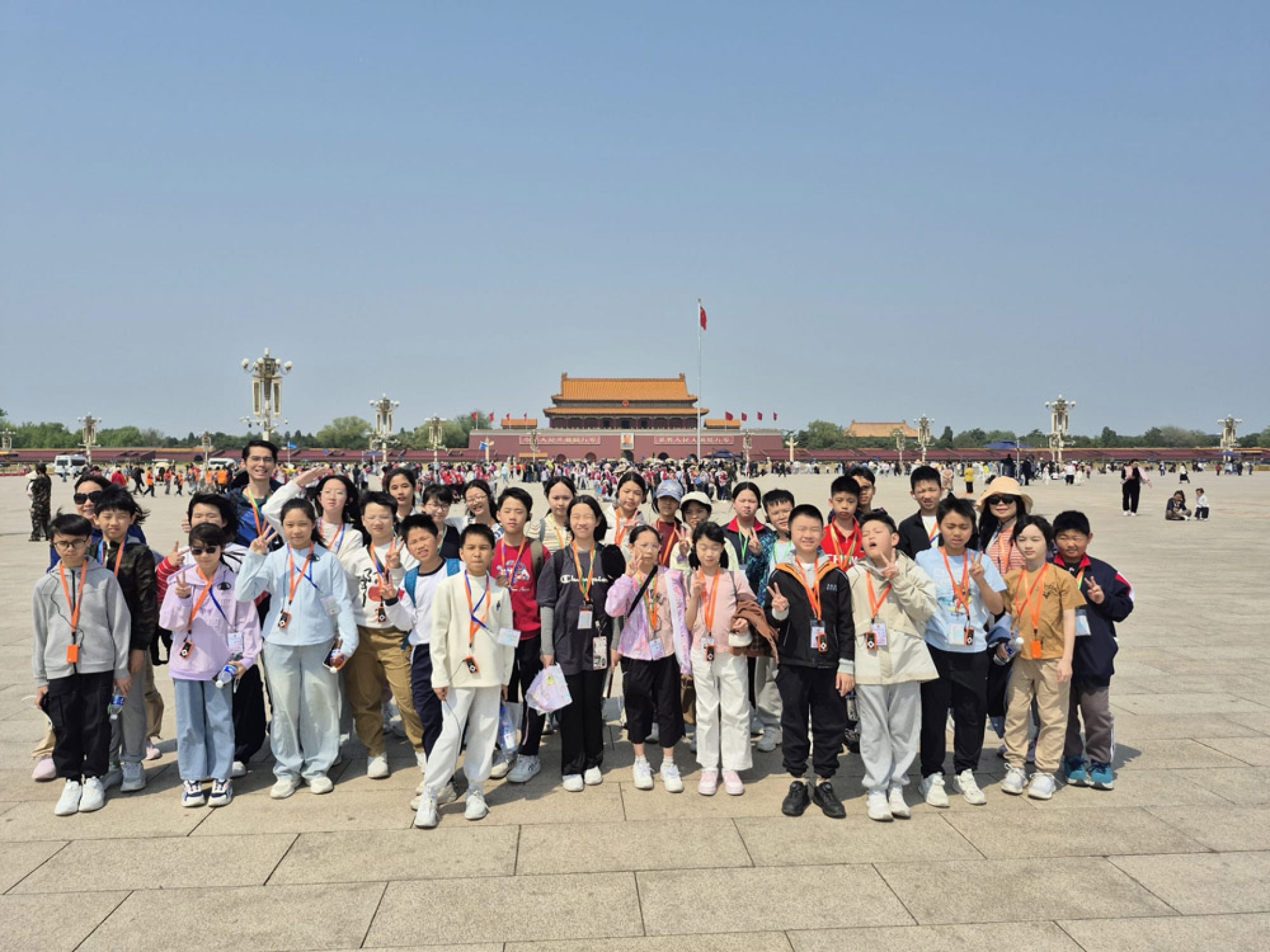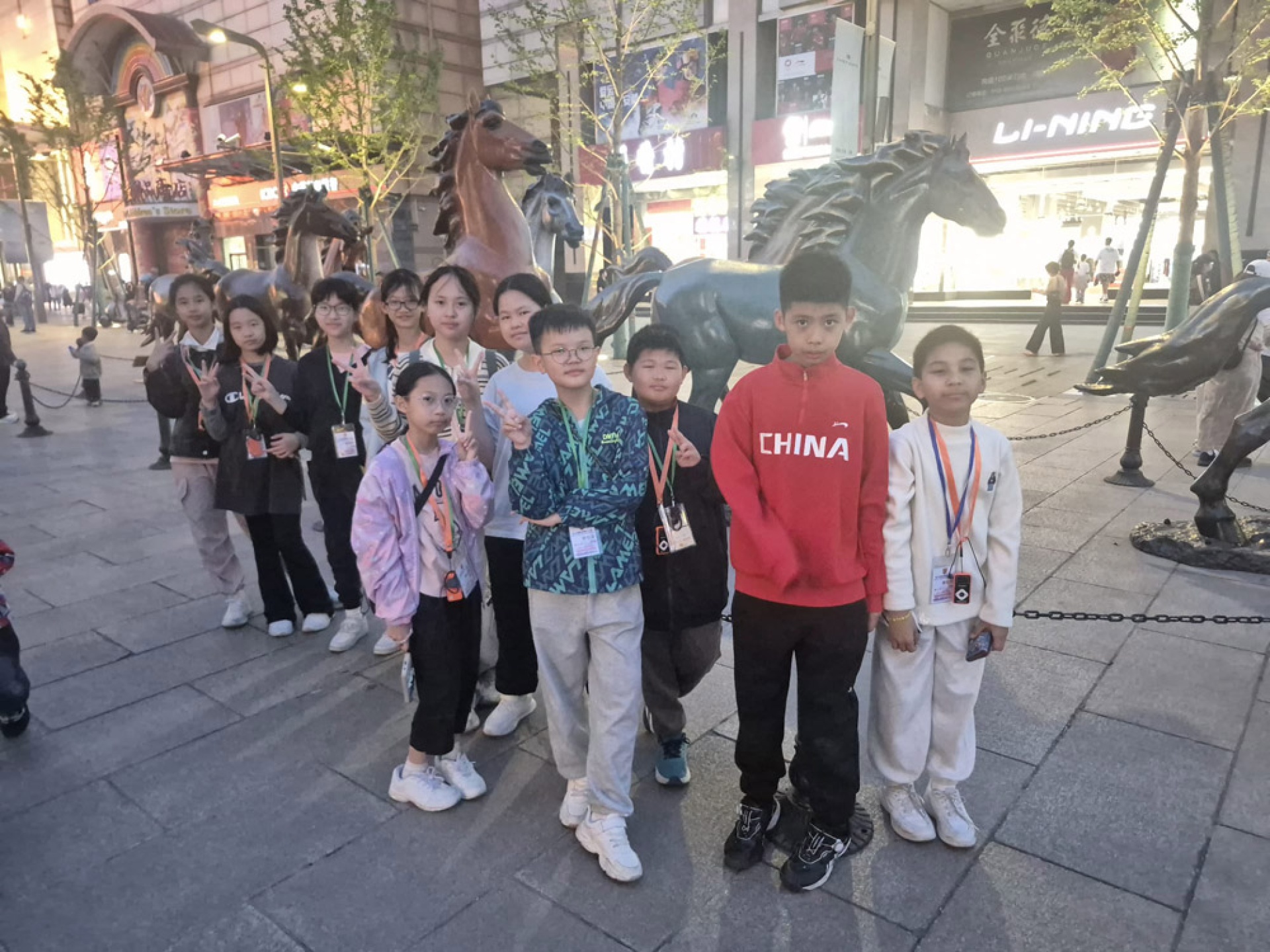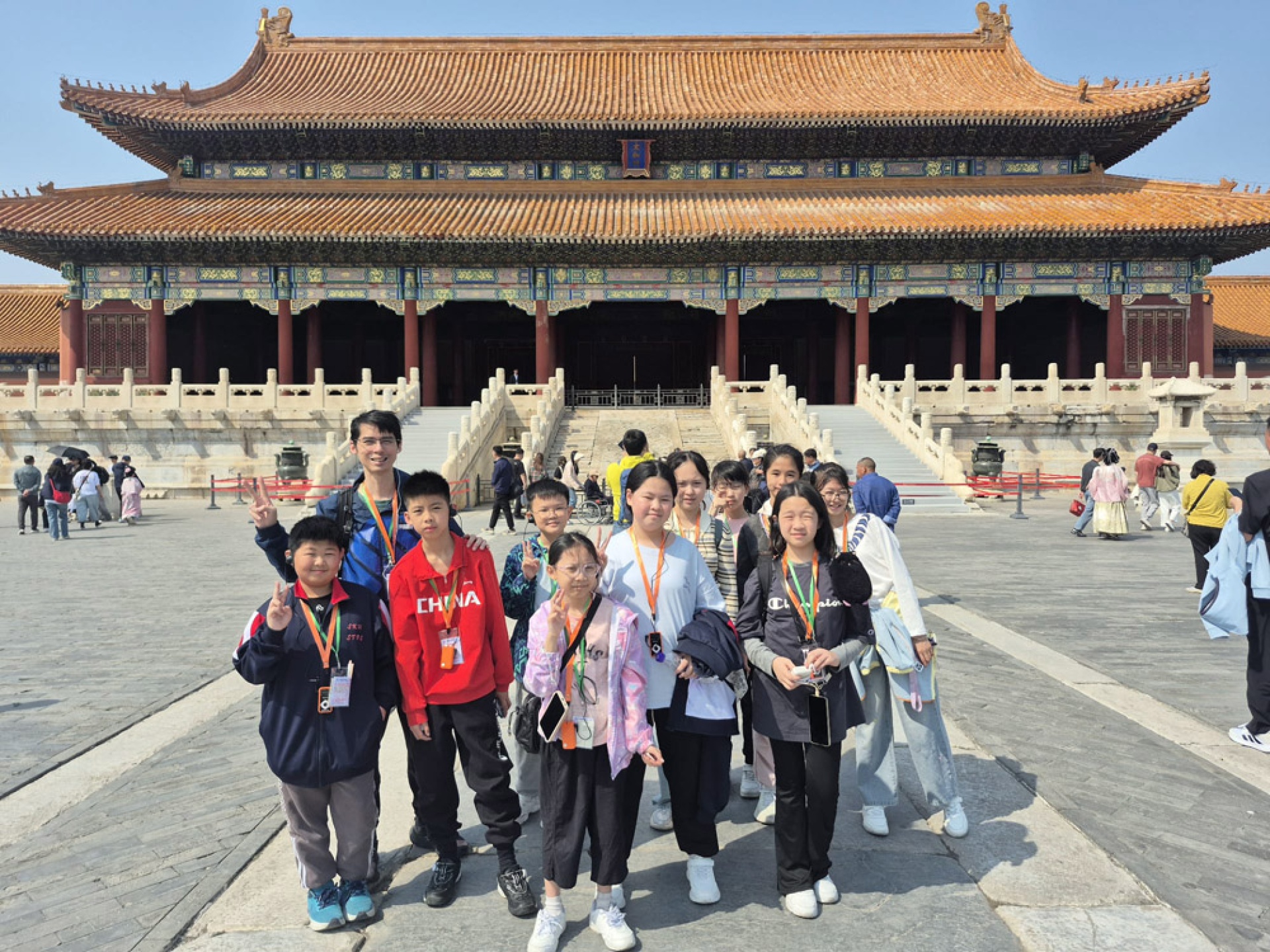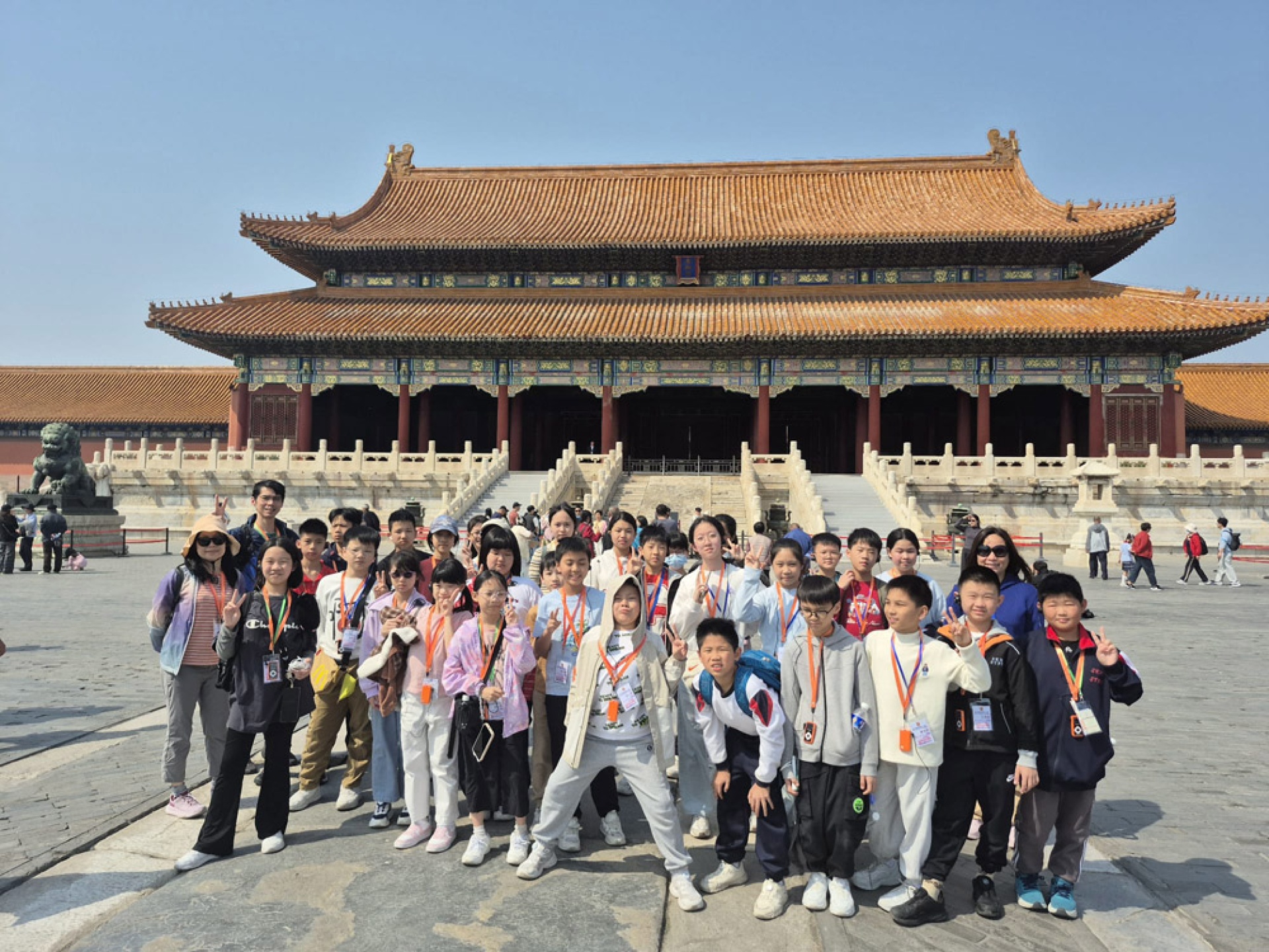 清晨走進天安門廣場,同學們在莊嚴氛圍中感受國家象徵的力量;隨後參觀 故宮博物館,在宏偉的宮殿與珍貴文物中觸摸歷史的厚度。午後漫步南鑼古巷,孩子們在古色古香的街巷裡體驗北京的市井文化。飯後夜晚,師生一同走訪王府井大街,燈火輝煌的街景讓旅程增添了熱鬧與溫度。