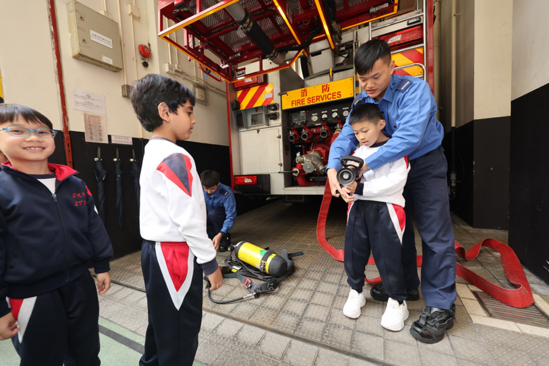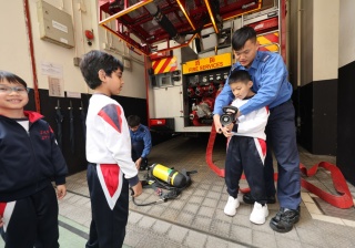 二年級到紅磡消防局參觀,了解消防員的裝備與工作,加深對消防安全及紀律服務的認識。