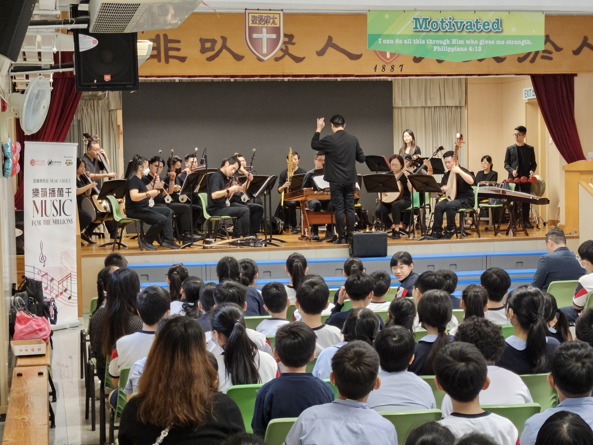 「樂韻播萬千」音樂會,音樂事務處導師合奏小組到校演出,學生欣賞表演之餘,也加深了對各類型中樂器的認識。