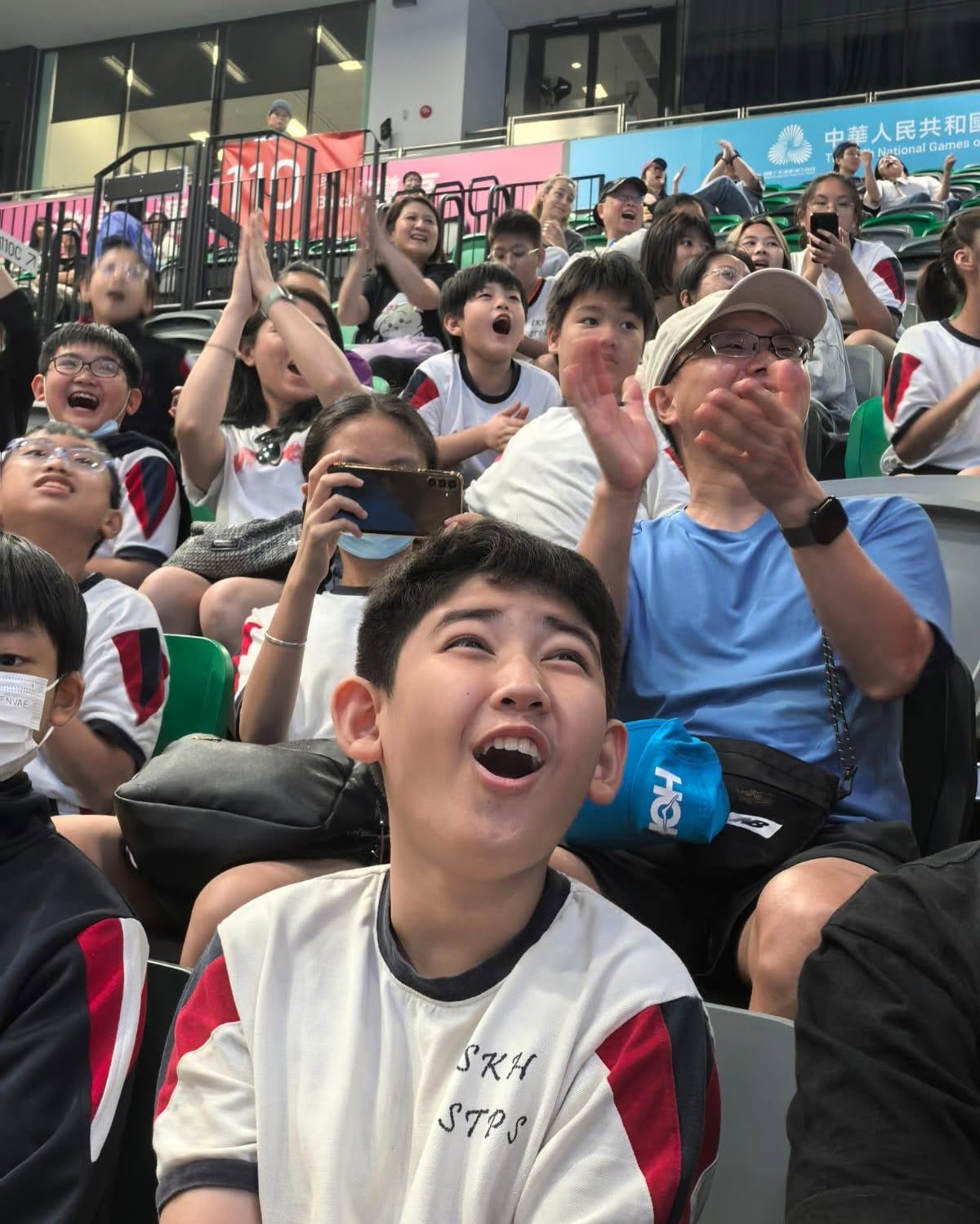 全運會香港賽事熱烈進行中!本校師生及家長今天親臨嶄新的啟德體育園體藝館,現場觀賞緊張刺激的男子手球賽事,全力為今晚香港隊打氣!現場氣氛高漲,大家都沉浸在體育盛事的熱血與激情之中!