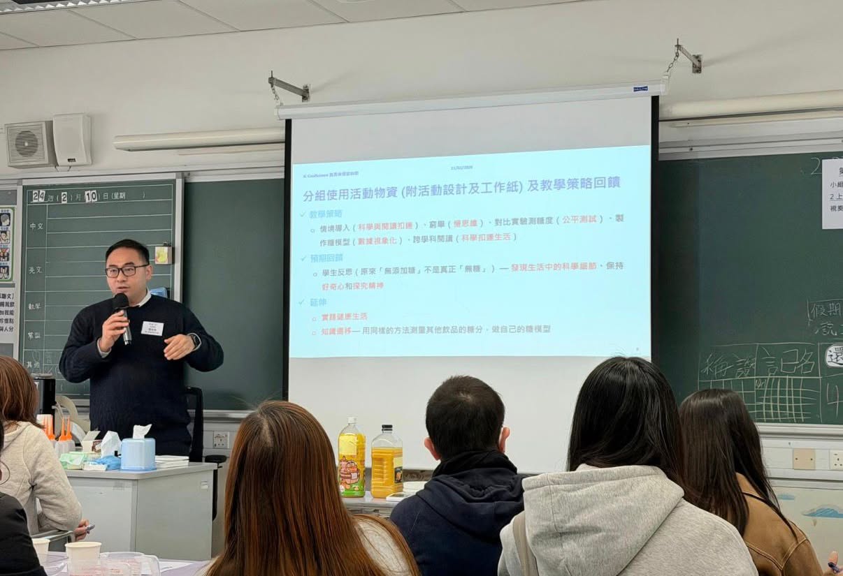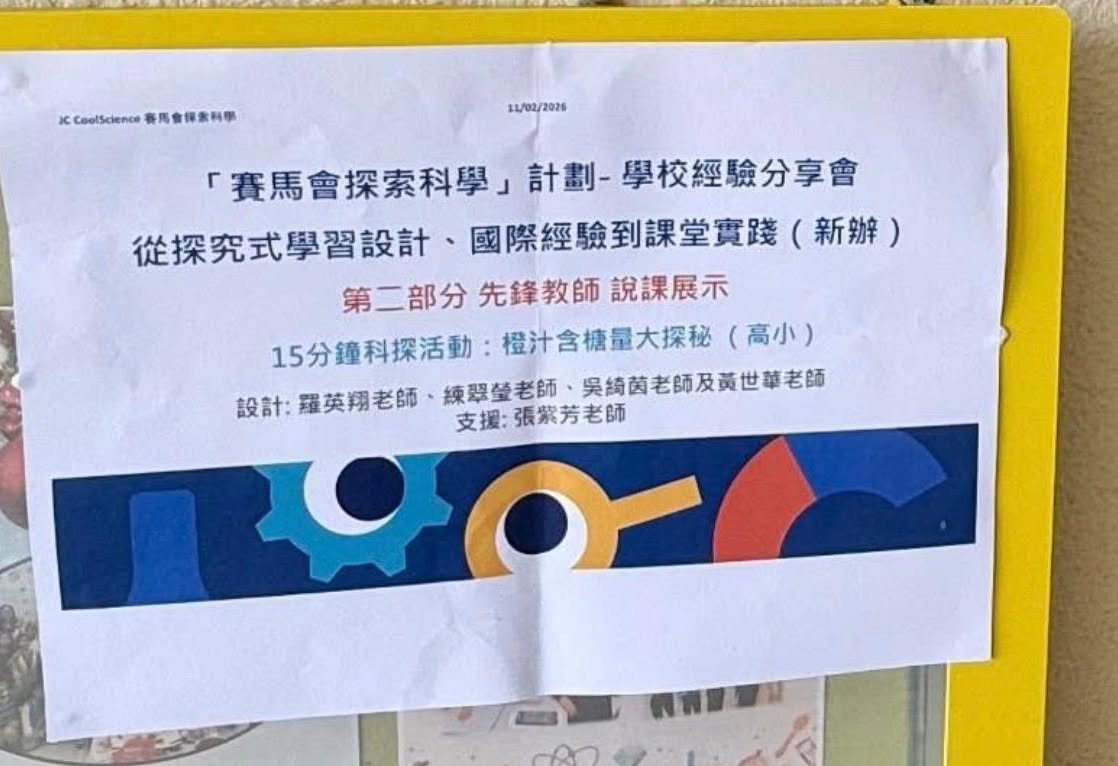 本校常識科及科學科科主任羅英翔老師早前獲選為第一屆「賽馬會探索科學」計劃先鋒教師,先後遠赴北京師範大學及美國史密森尼科學教育中心交流,接受探索式科學教育培訓。而於2月11日探索科學計劃學校經驗分享會中,羅老師亦主持教師工作坊環節,為在場過百位同工演示小組所設計的15分鐘科探活動,推動本港科學科課程創新與教研發展。