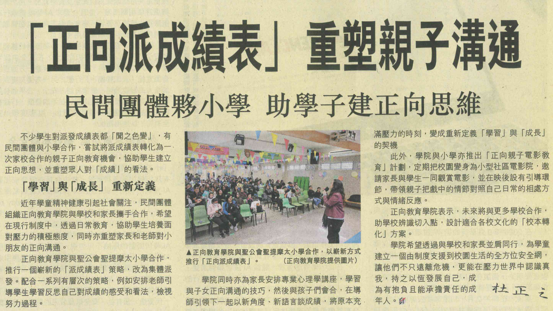 媒體報導:《香港經濟日報》「正向派成績表」重塑親子溝通