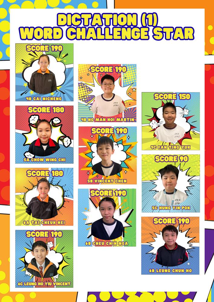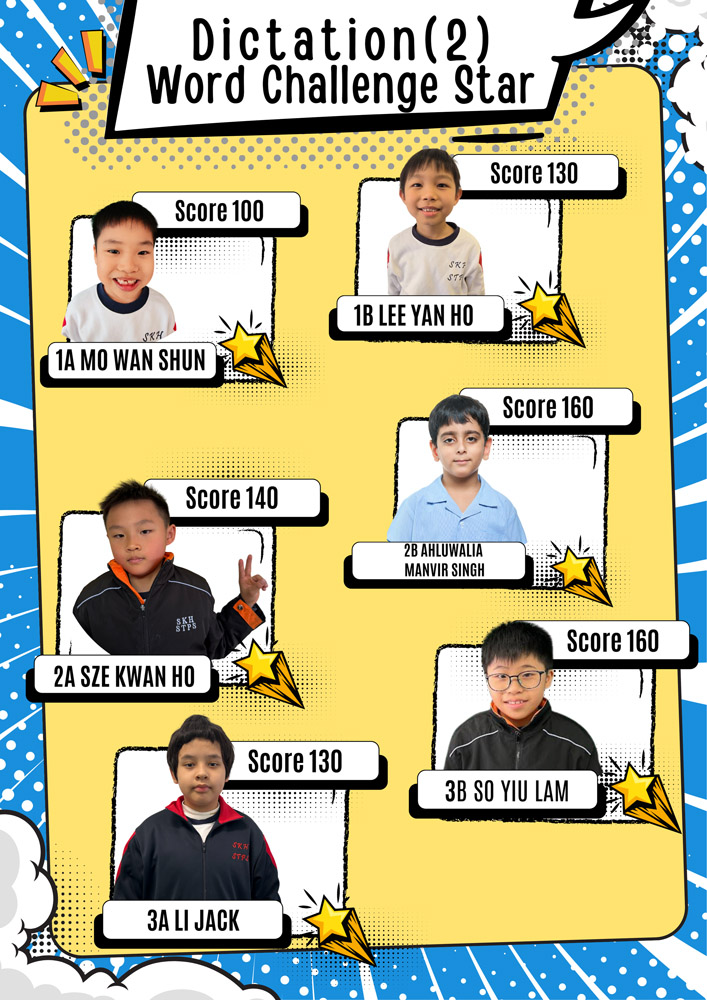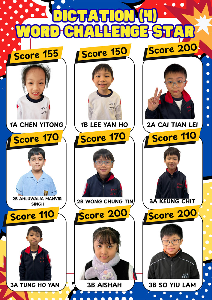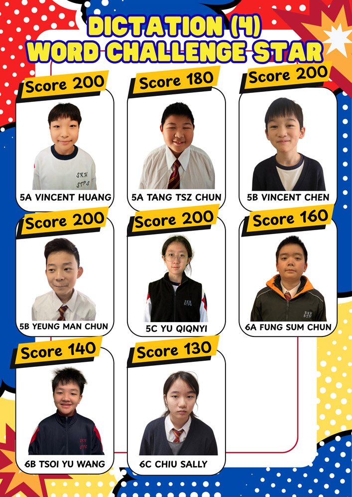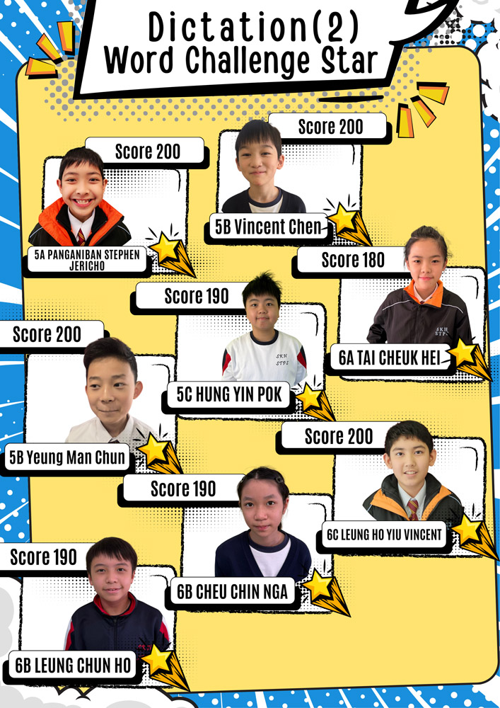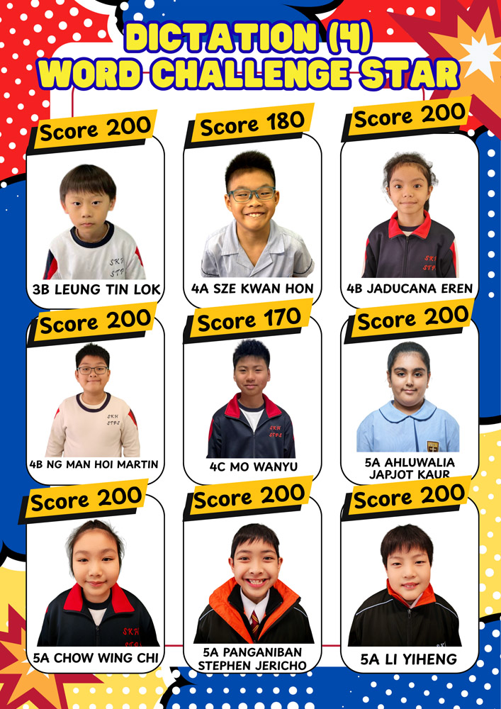 Each time, one student from each class is awarded the title of Word Challenge Star. The achievements of these Word Challenge Stars are displayed on corridor posters to recognise their effort and accomplishment.